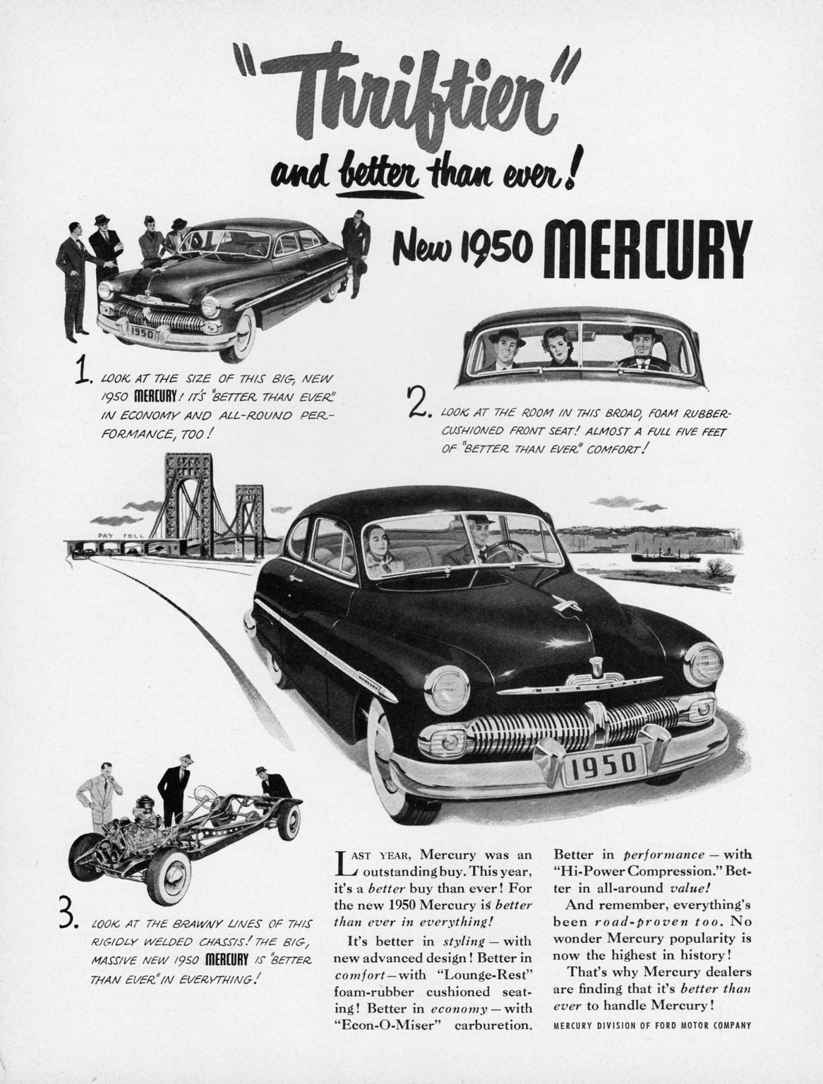 1950 Mercury 6-Pass. Coupe and Sport Sedan. ‘Thriftier’ and better than ever!