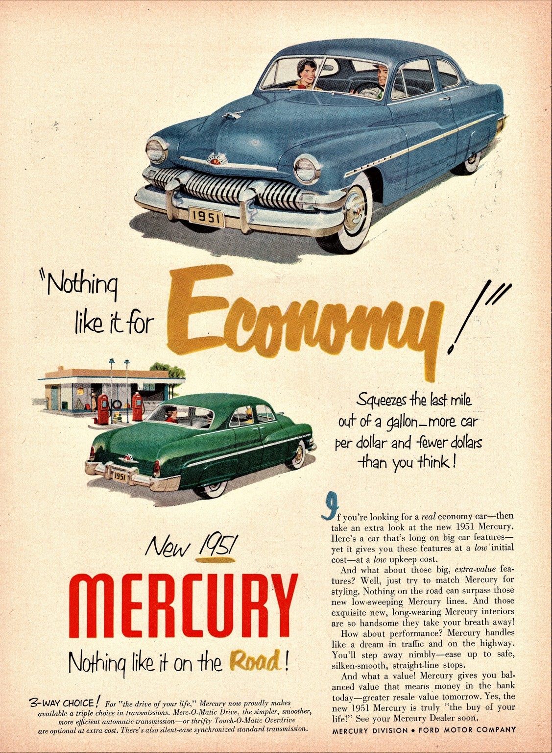 1951 Mercury Sport Coupe & Sport Sedan. ‘Nothing like it for Economy!’