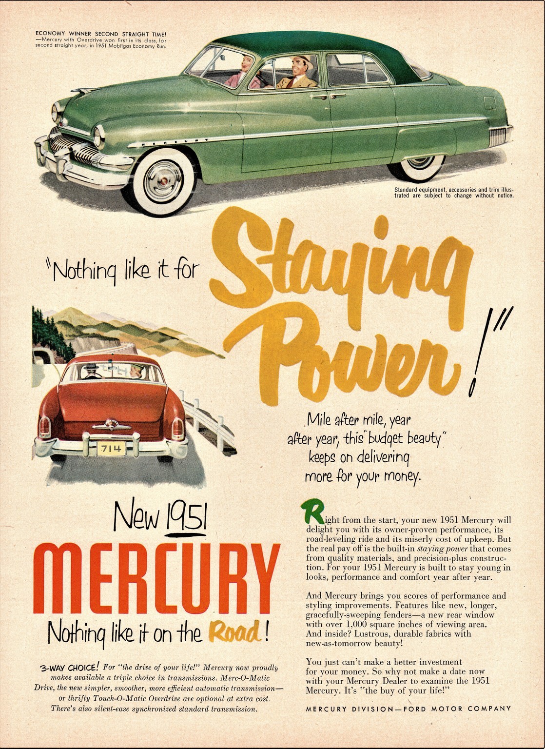 1951 Mercury Sport Sedan. ‘Nothing like it for Staying Power!’