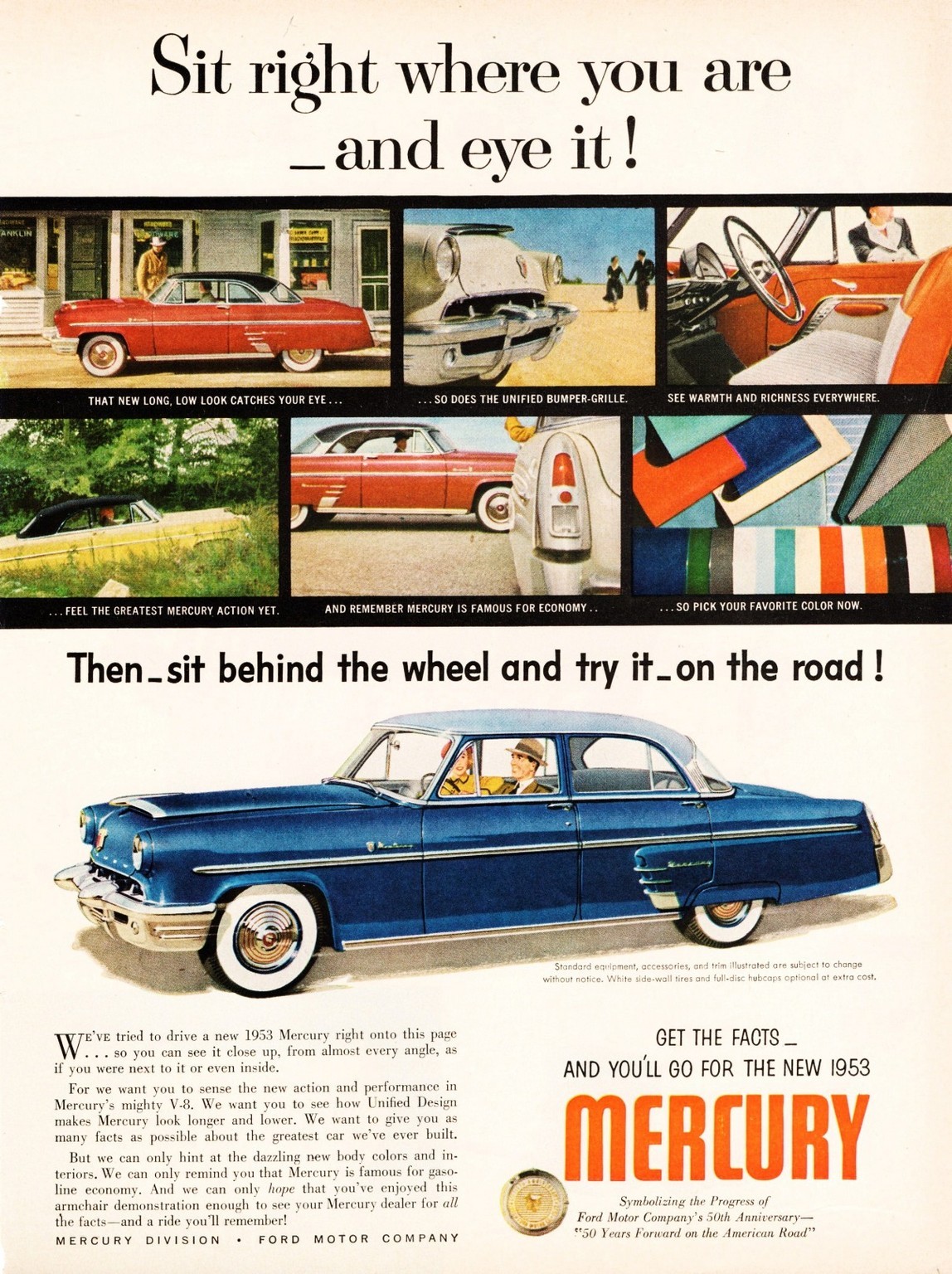 1953 Mercury Monterey Special Custom Four-Door Sedan. Sit right where you are _ and eye it!