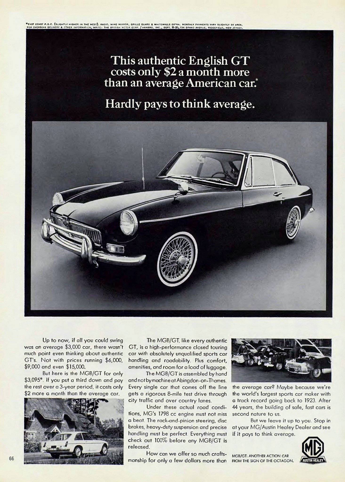 1967 MG MGB/GT. This authentic English GT costs only $2 month more than average American car. Hardly pays to think average
