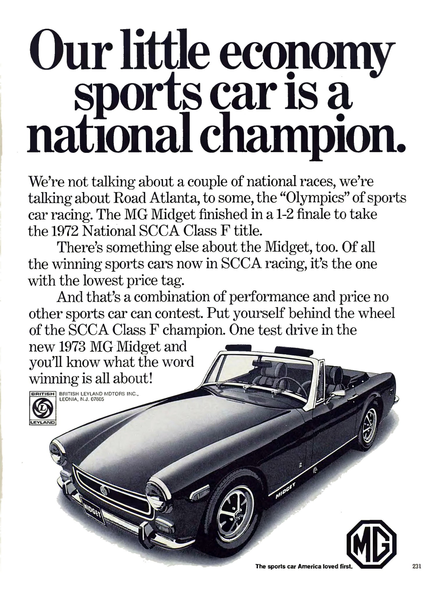 1973 MG Midget. Our little economy sports car is a national champion