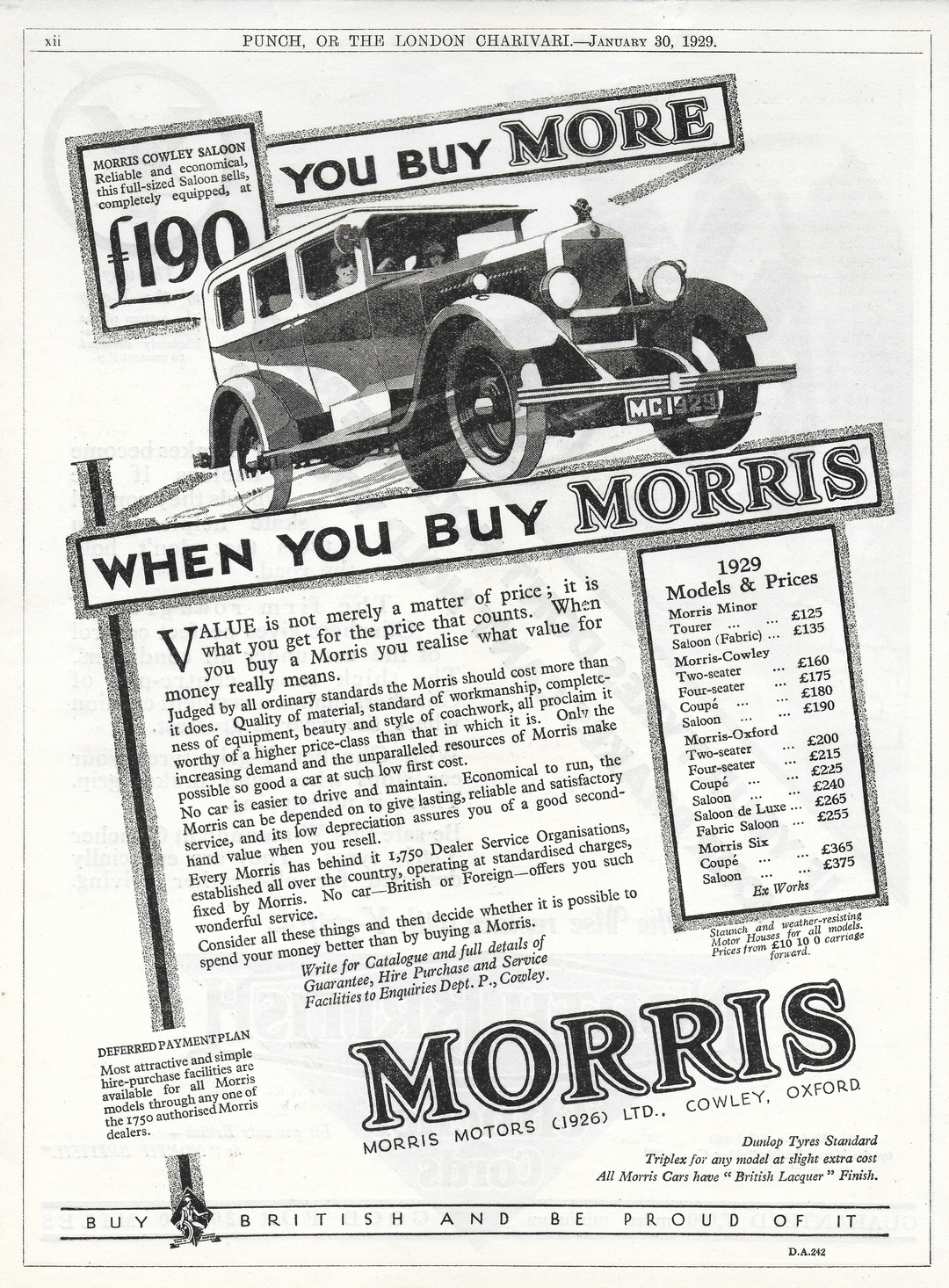 1929 Morris Cowley. You Buy More When You Buy Morris