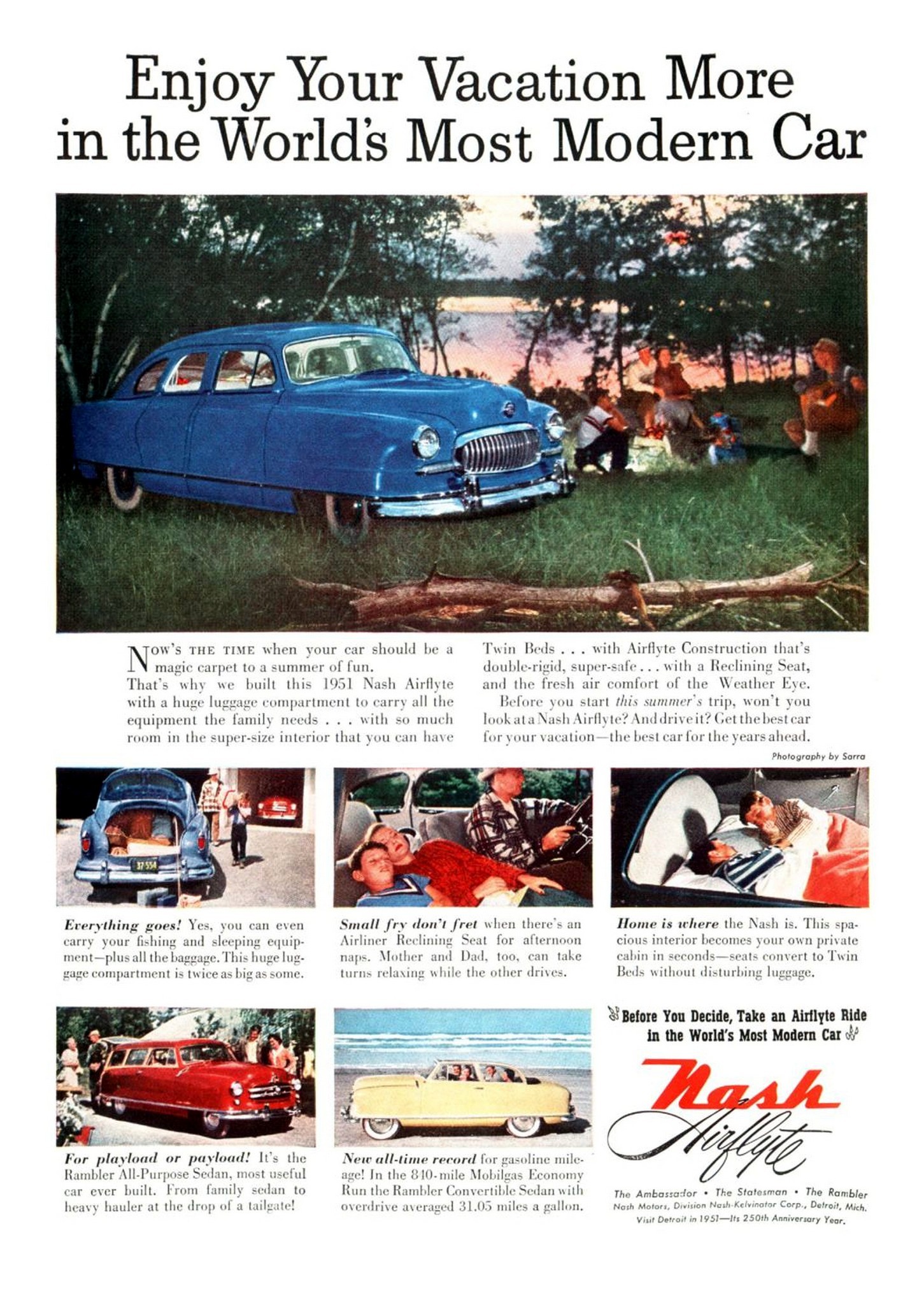 Main » Cars » Nash Ad and Poster Collection » 1951 Nash Airflyte. Enjoy Your Vacation More in the World’s Most Modern Car