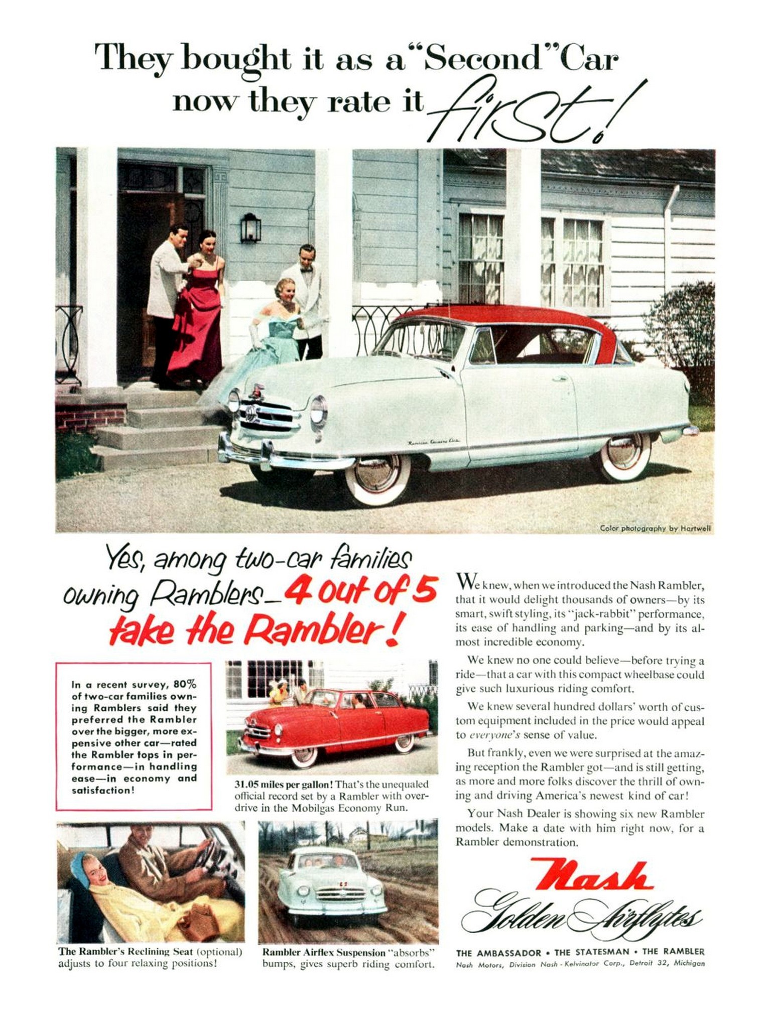 Main » Cars » Nash Ad and Poster Collection » 1952 Nash Rambler. They bought it as a ‘Second’ Car now they rate it first!