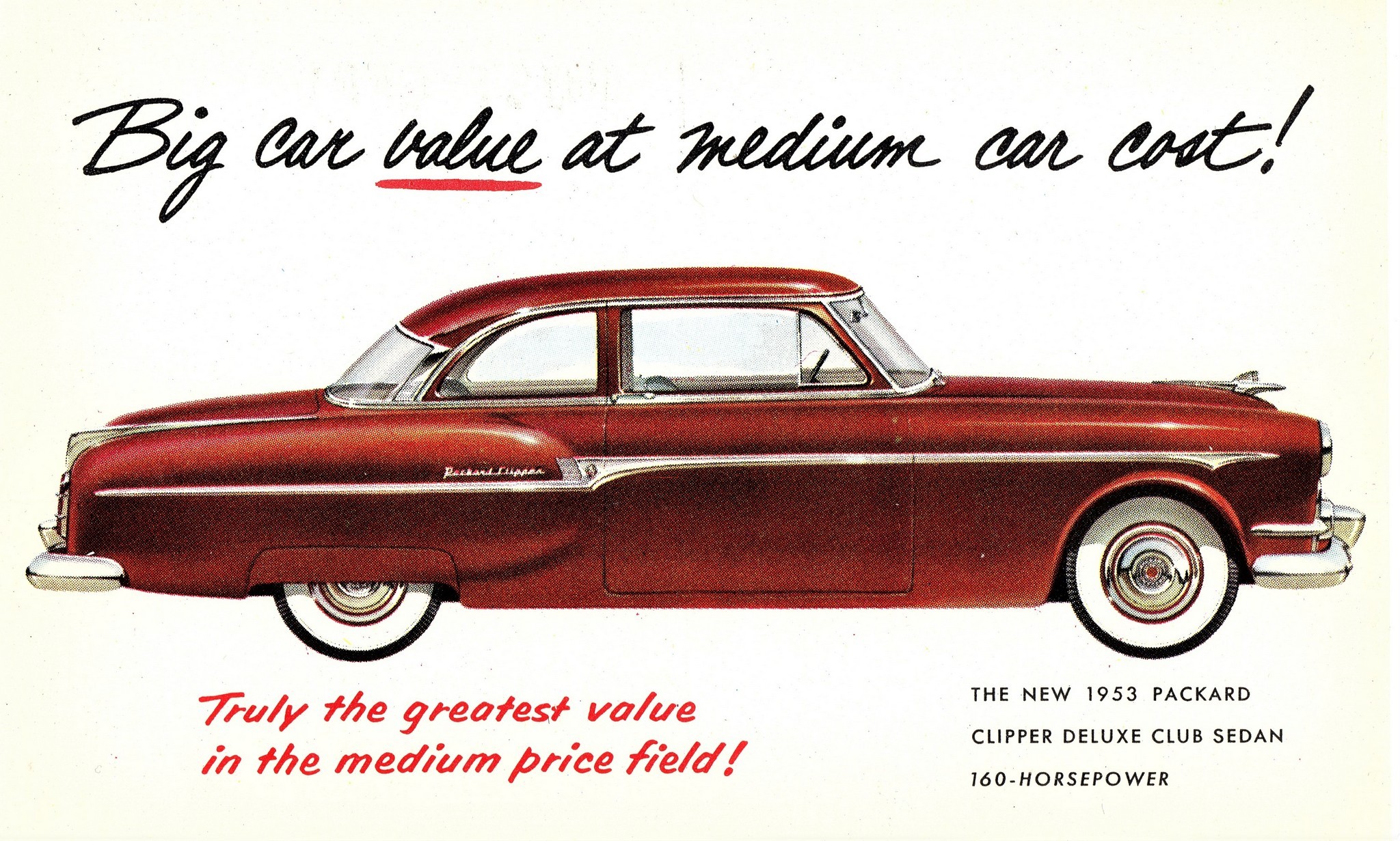 1953 Packard Clipper De Luxe Club Sedan. Big car value at medium car cost!