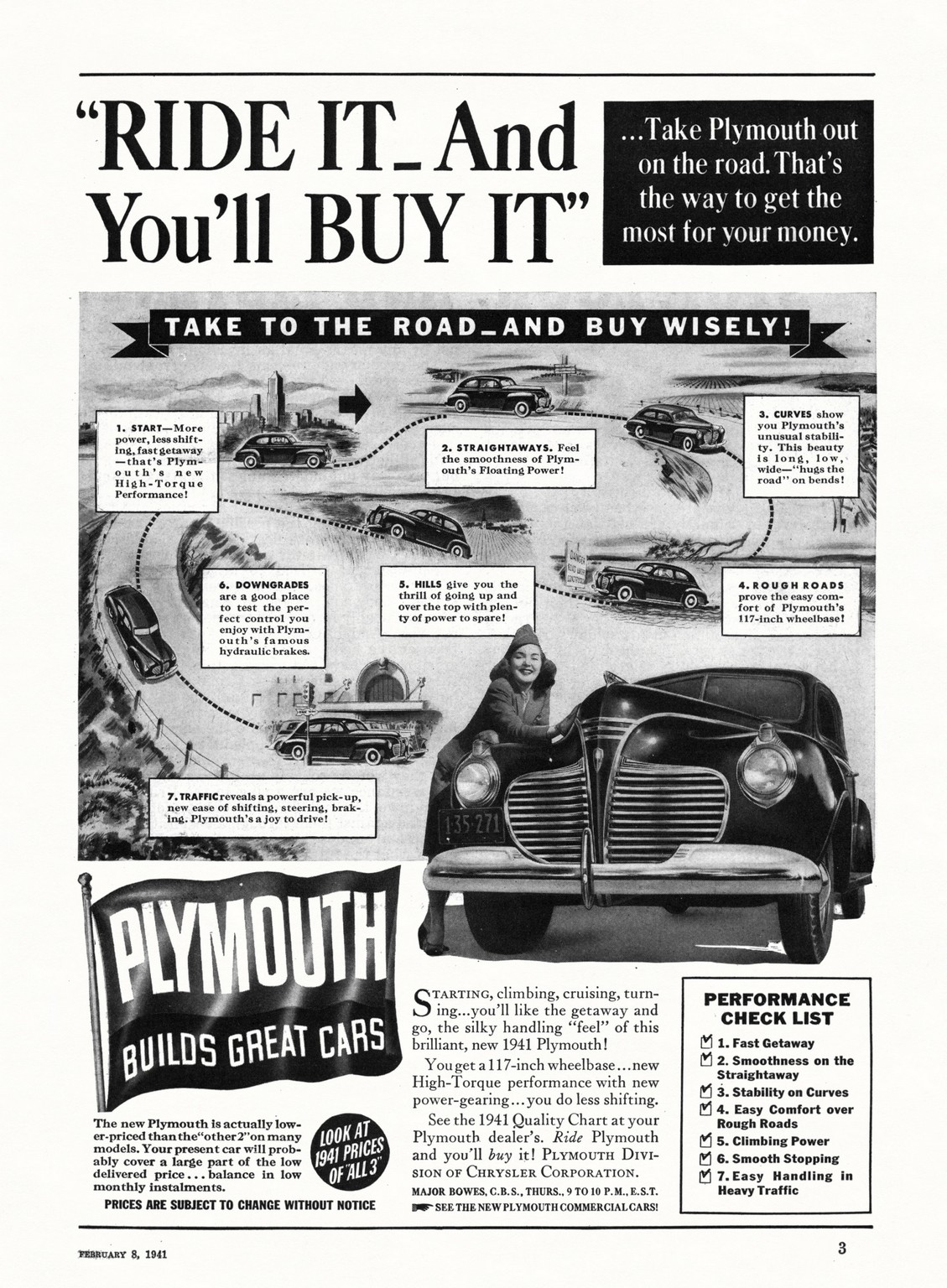 1941 Plymouth. ‘Ride It _ And You’ll Buy It’
