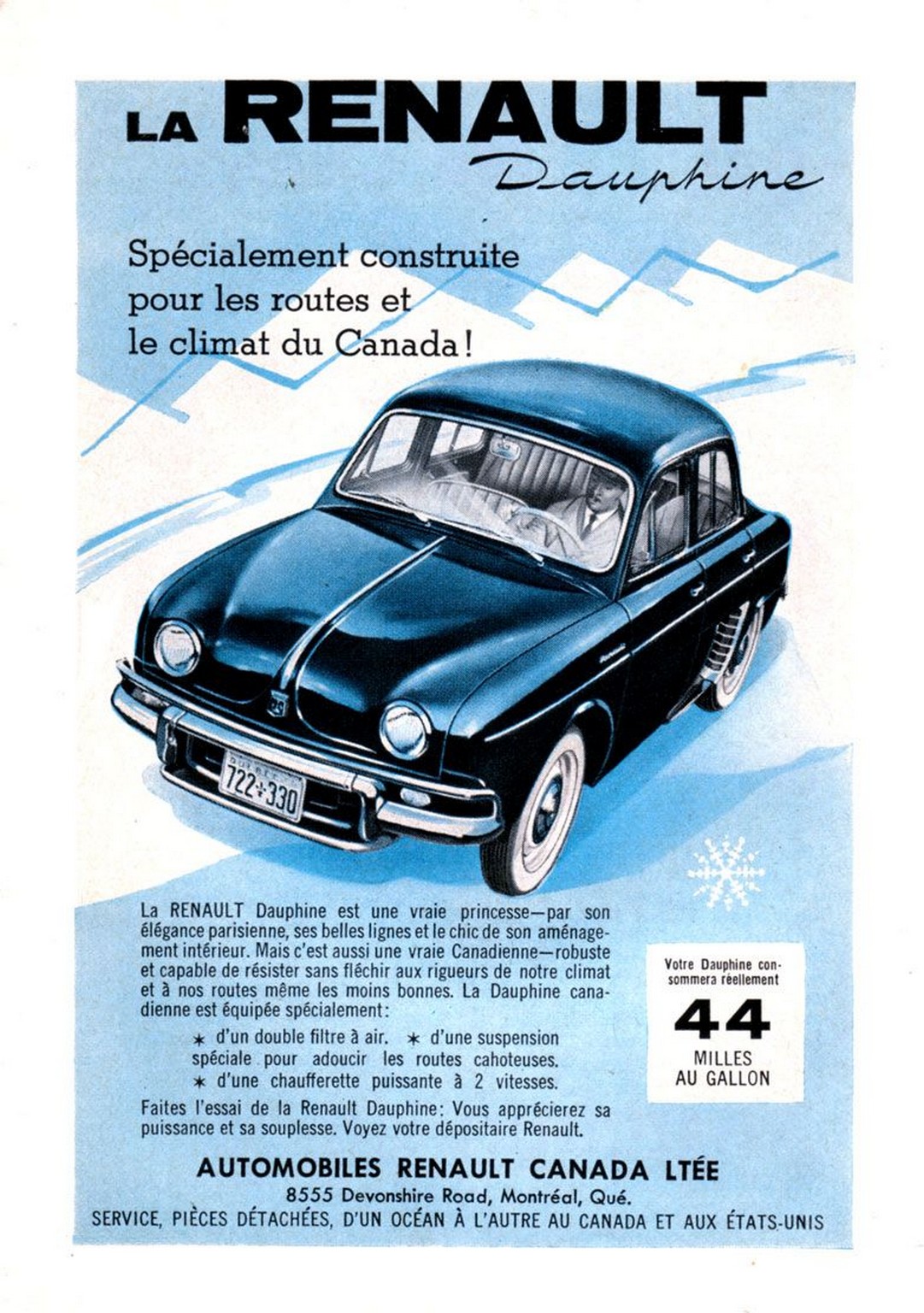 1958 Renault Dauphine. Specialement construite pour les routes et le climat du Canada!