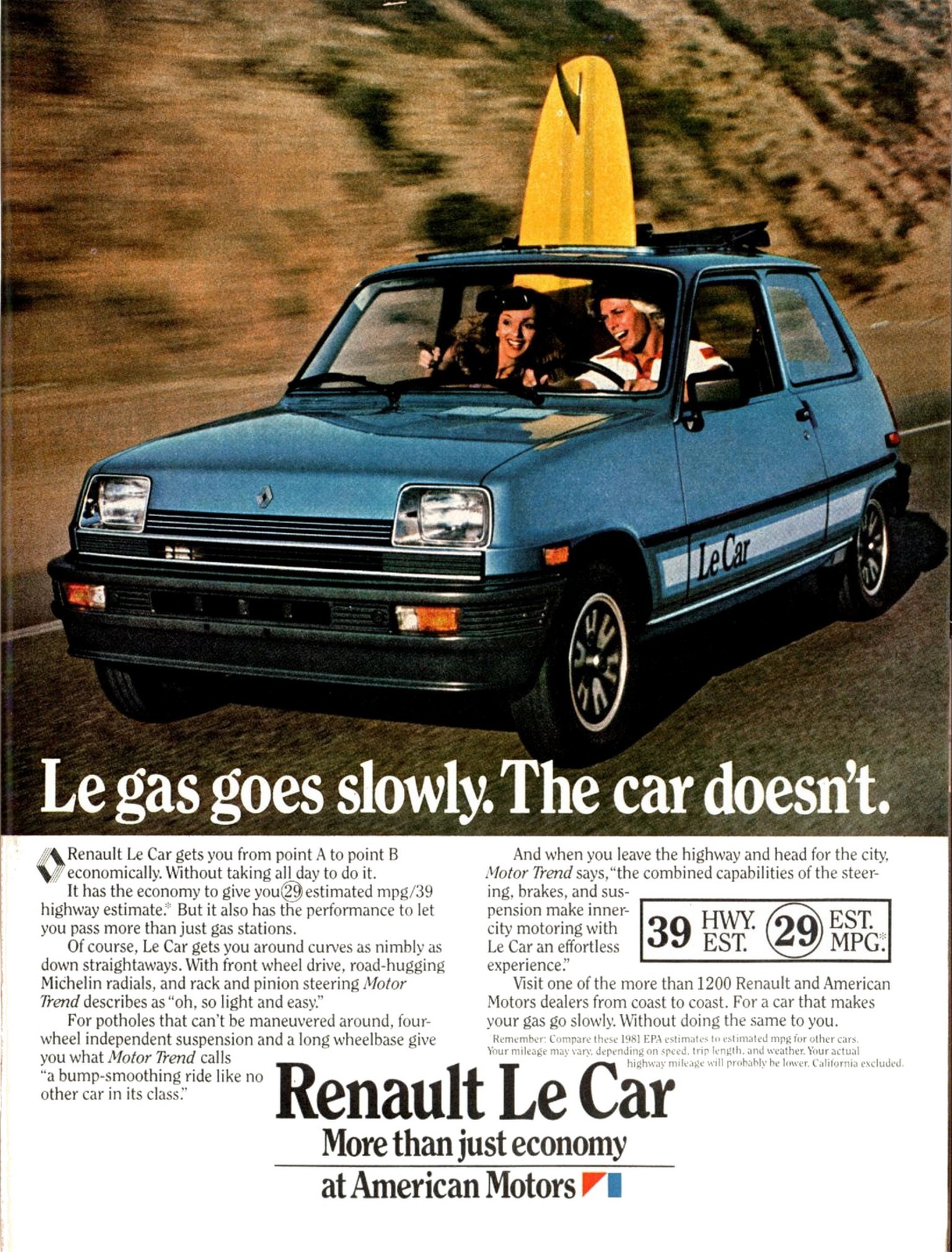 1981 Renault Le Car. Le gas goes slowly. The car doesn’t