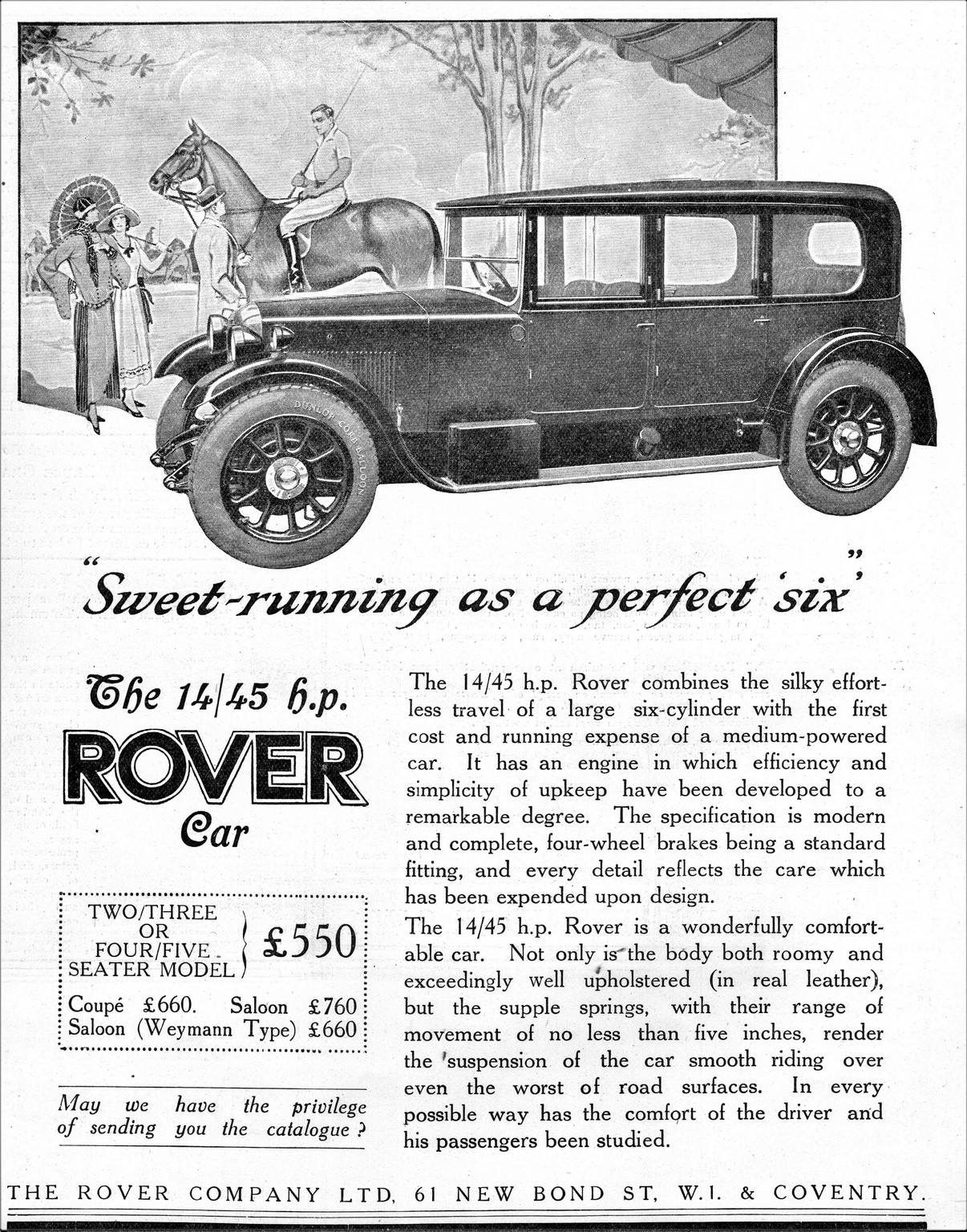 1925 Rover 14-45 H.P. Saloon. ‘ Sweet-running as a perfect ‘six’