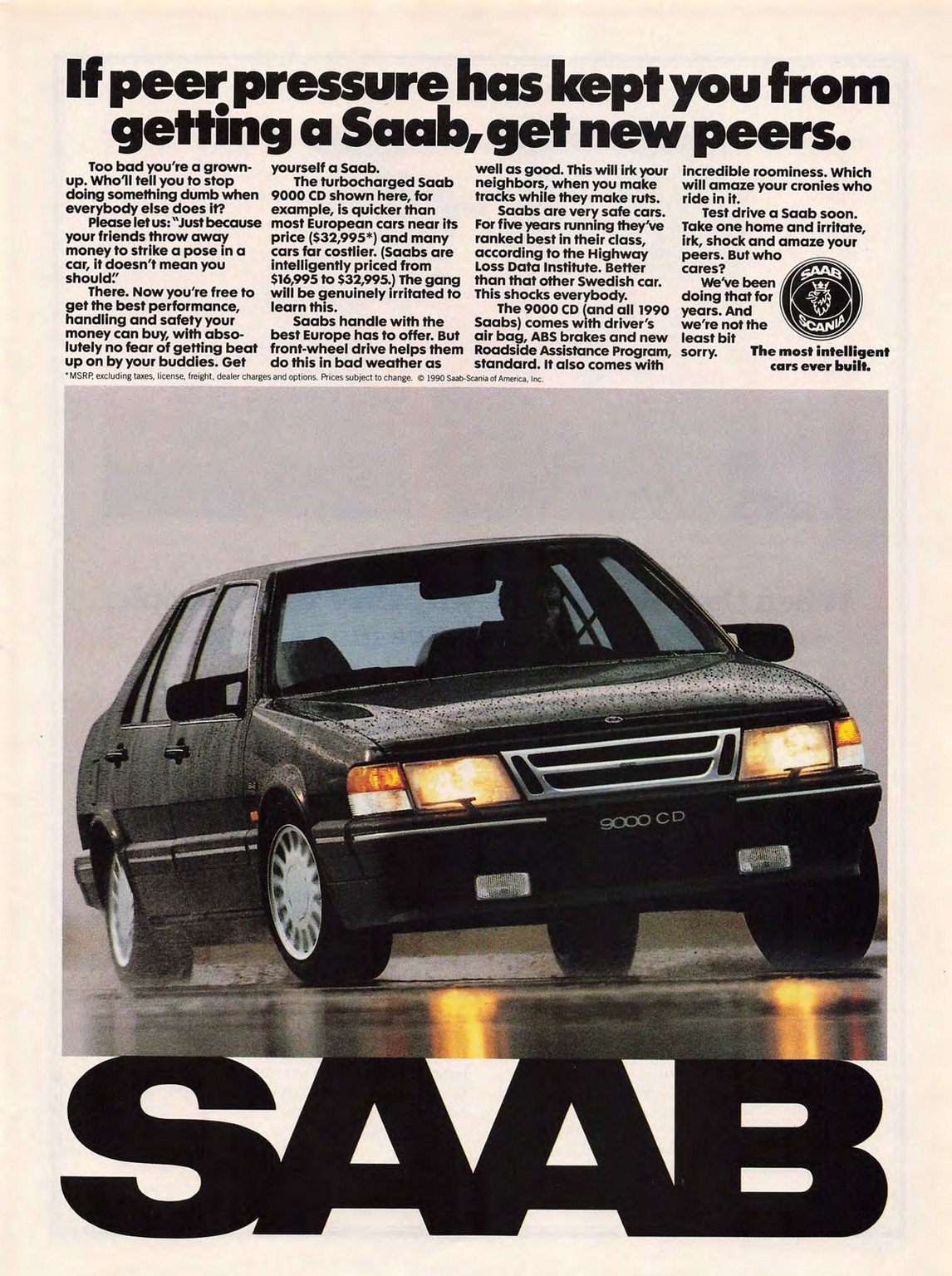 1990 Saab 9000 CD. If peer pressure has kept you from getting a Saab, get new peers