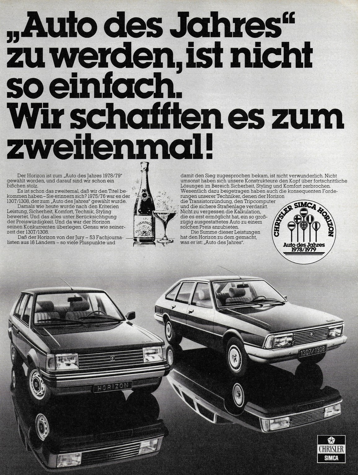 1979 Simca Horizon and 1307-1308. ‘Auto des Jahres’ zu werden, ist nicht so einfach. Wir schafften es zum zweitenmal!