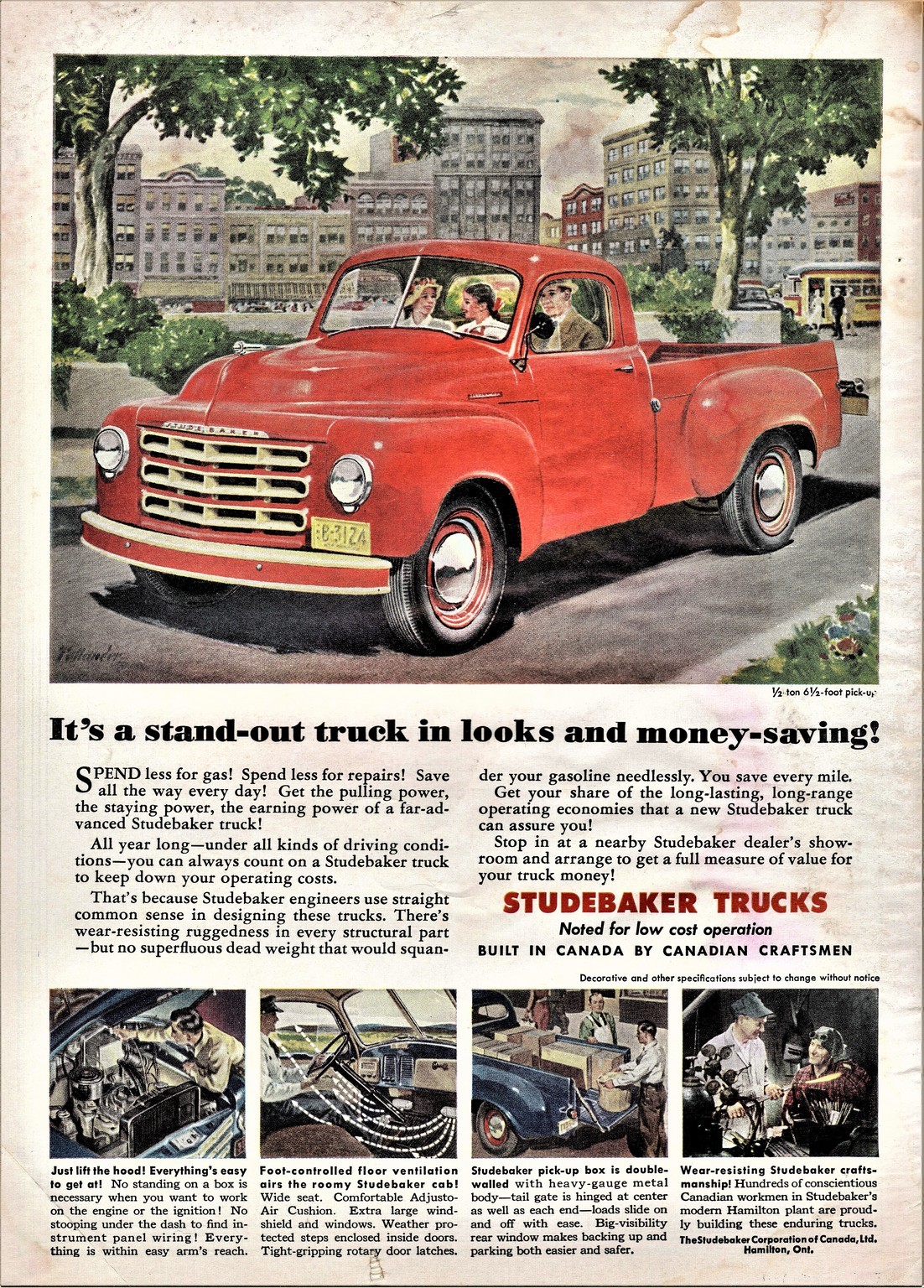 1951 Studebaker 1/2-Ton 6-1-2 Foot Pickup. It’s a stand-out truck in looks and money-saving!