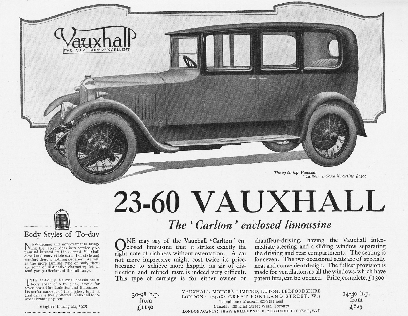 1925 Vauxhall 23-60 Carlton Enclosed Limousine