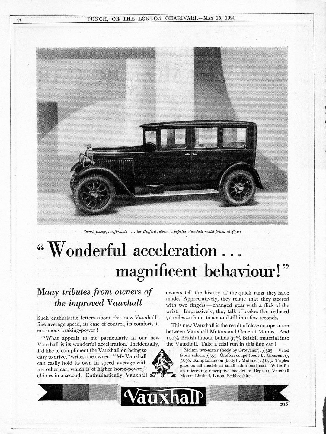 1929 Vauxhall Bedford Saloon. 'Wonderful acceleration... magnificent behaviour!'