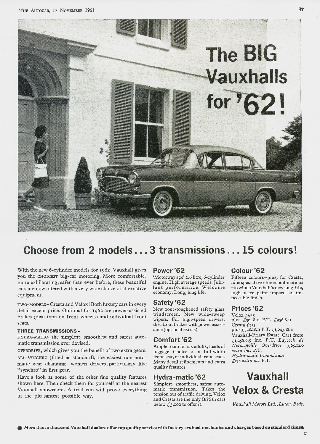 1962 Vauxhall Cresta. The Big Vauxhalls for ’62!