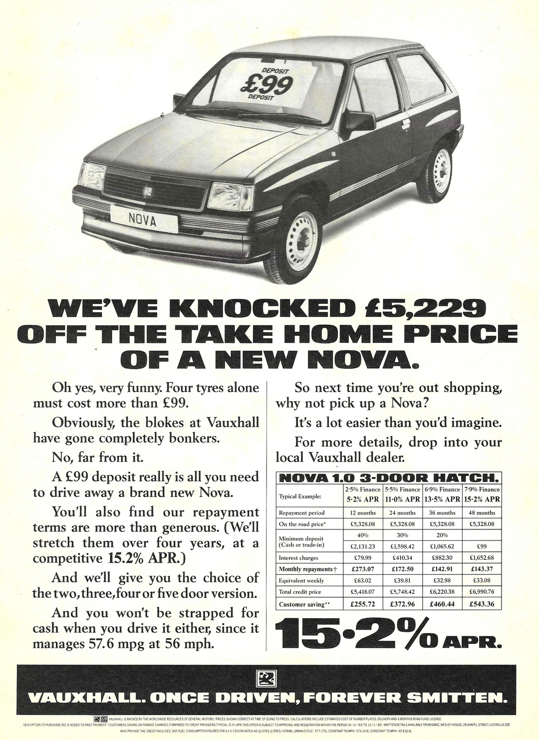 1989 Vauxhall Nova. We’ve Knocked £5,229 Off The Take Home Price Of A New Nova