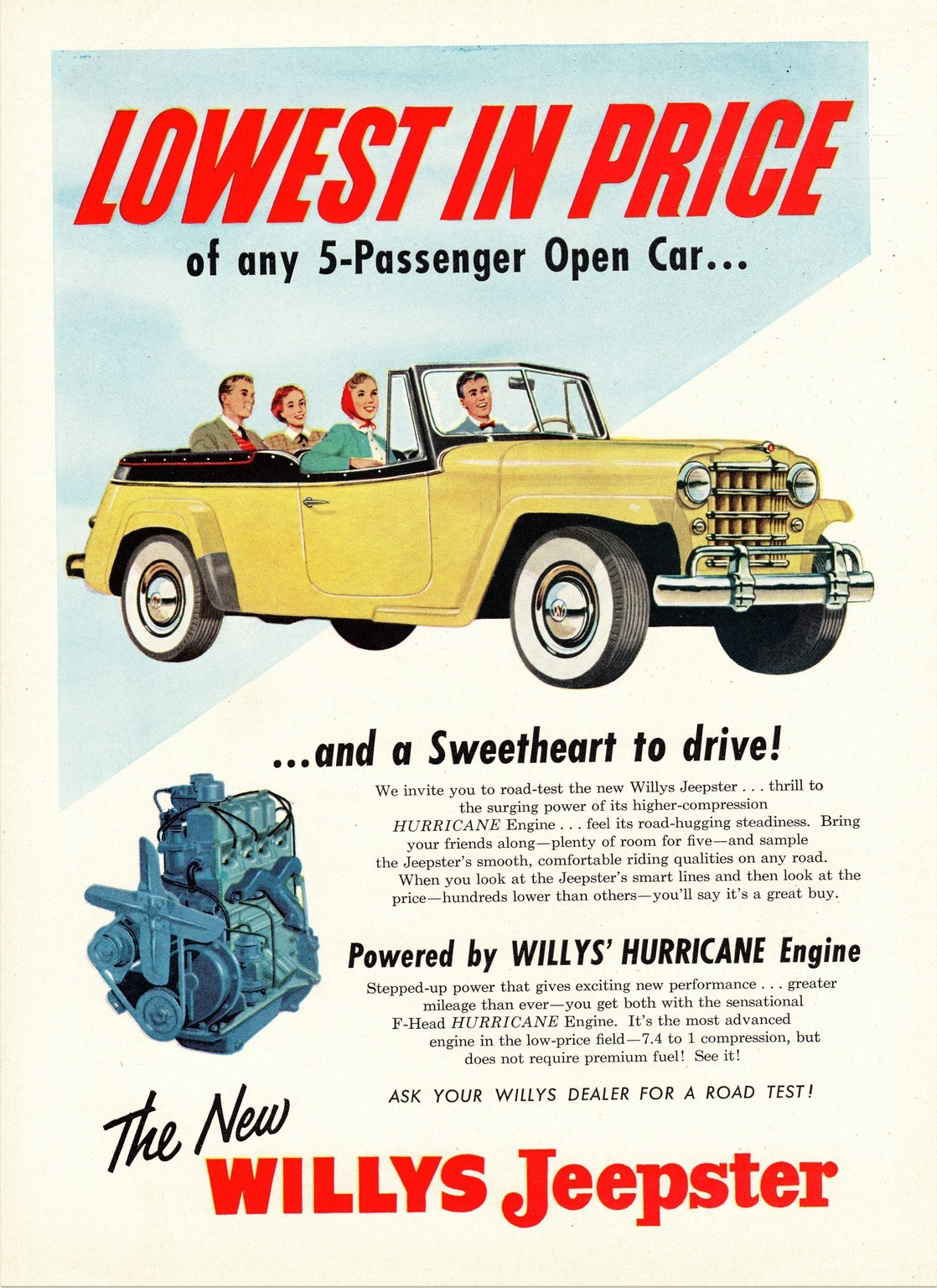 1950 Willys Jeepster. Lowest In Price of any 5-Passenger Open Car...