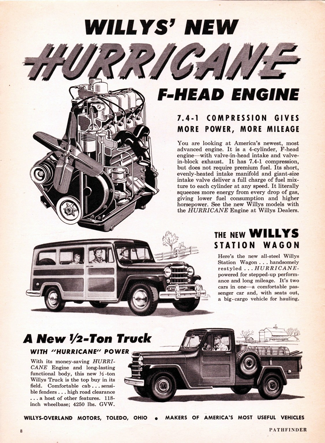 1950 Willys Station Wagon and 1-2 Ton Truck with Willy's New Hurricane F-Head Engine