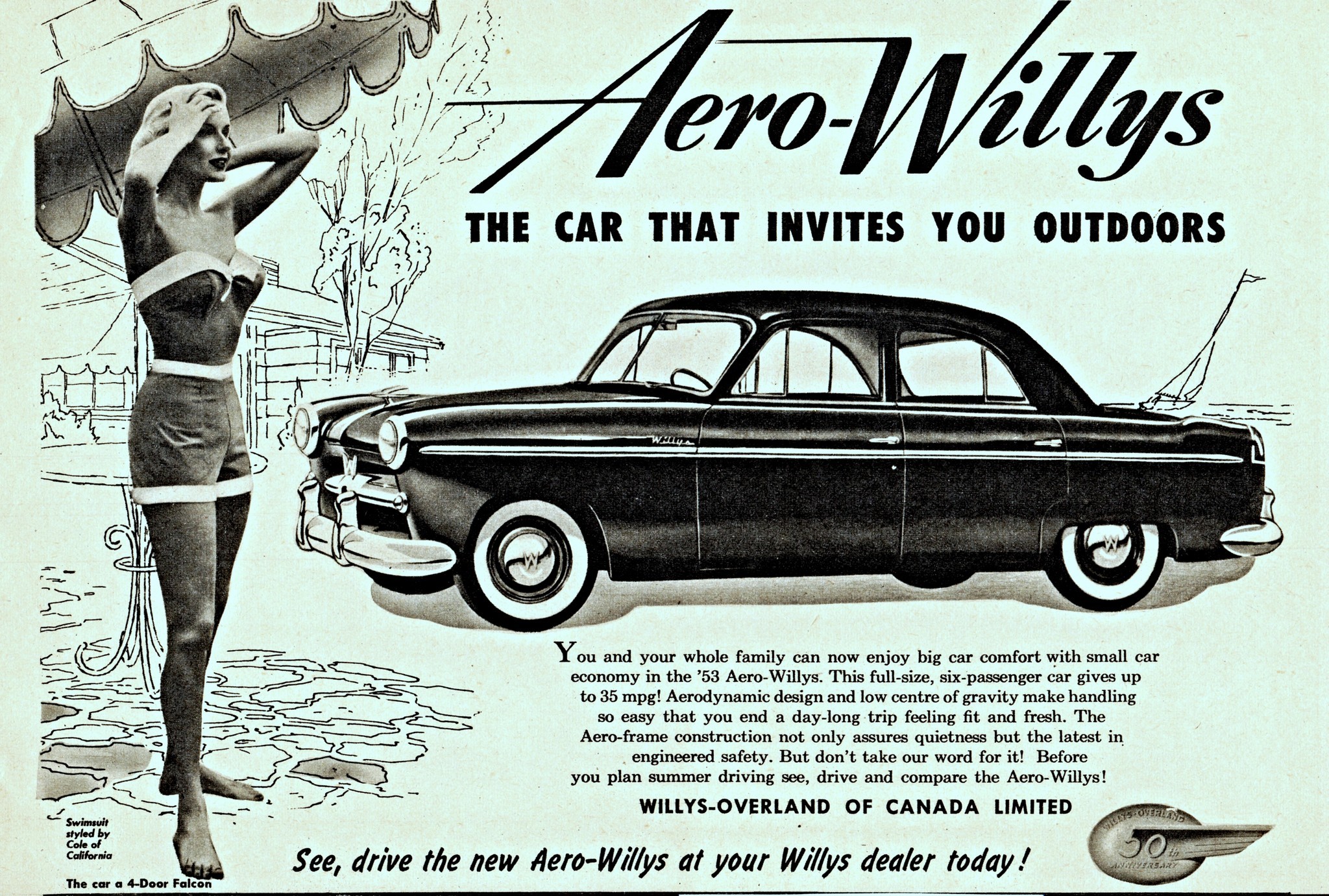 1953 Willys Aero Falcon Sedan. The Car That Invites You Outdoors