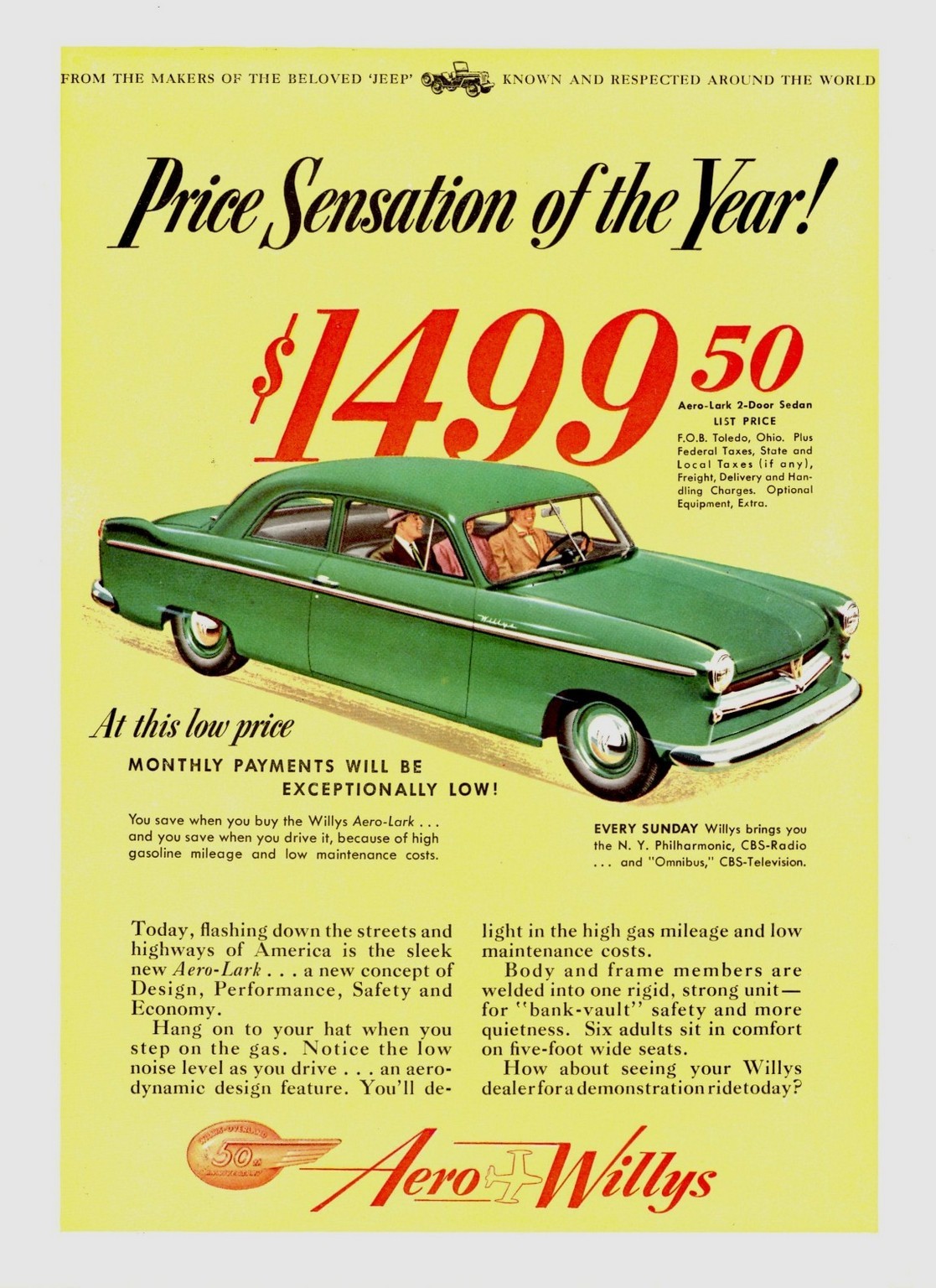 1953 Willys Aero-Lark 2-Door Sedan. Price Sensation of the Year!