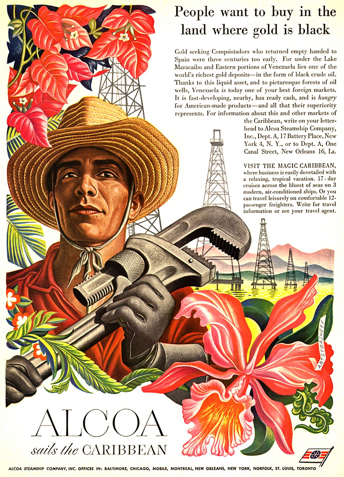 1949 People want to buy in the land where gold is black. Alcoa sails the Caribbean