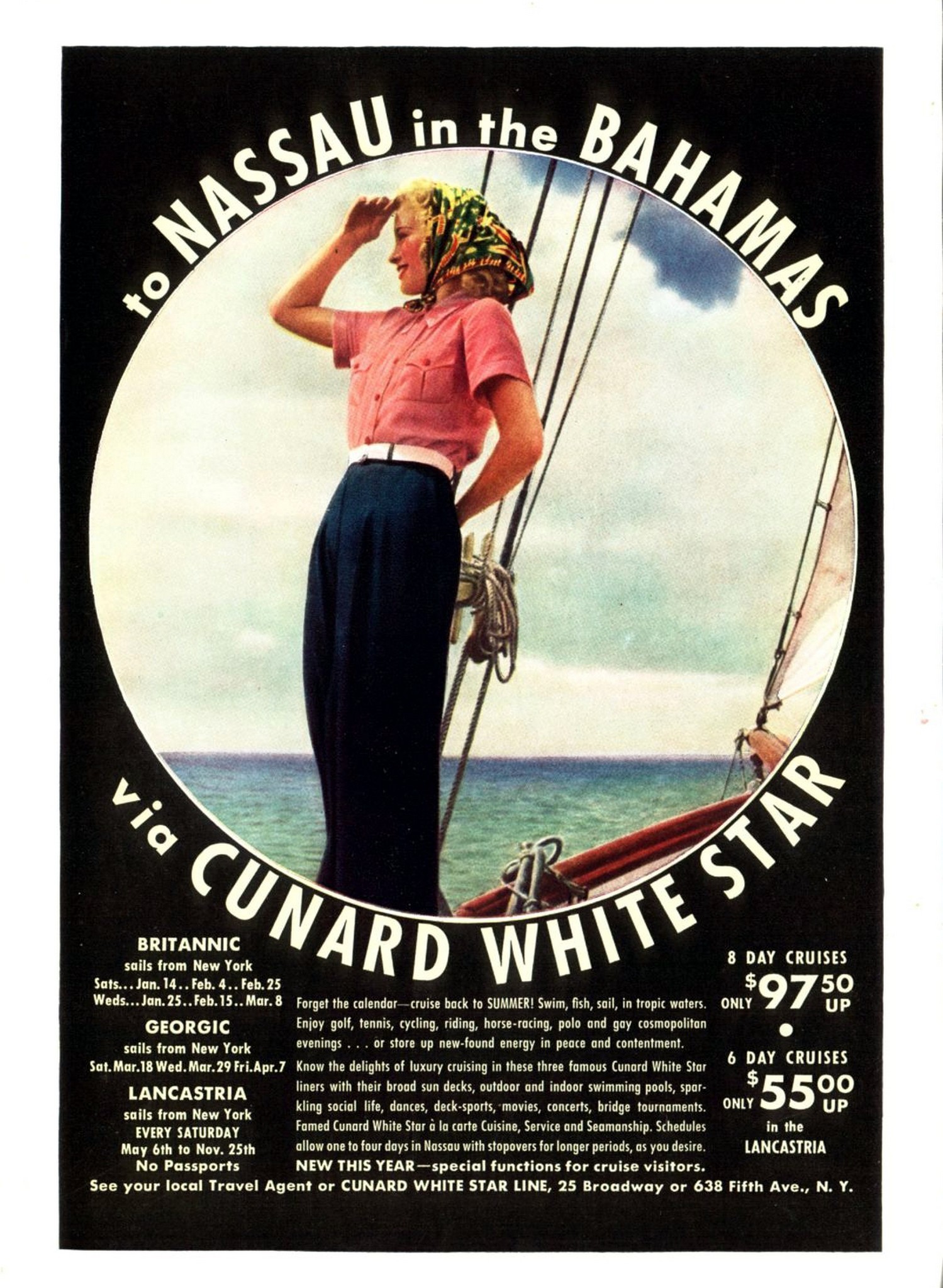 1939 to Nassau in the Bahamas via Cunard White Star