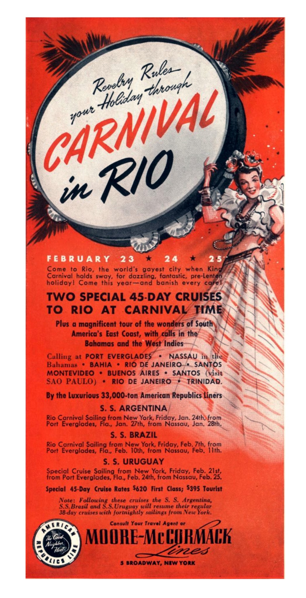 1941 Carnival in Rio. Moore-McCormack Lines