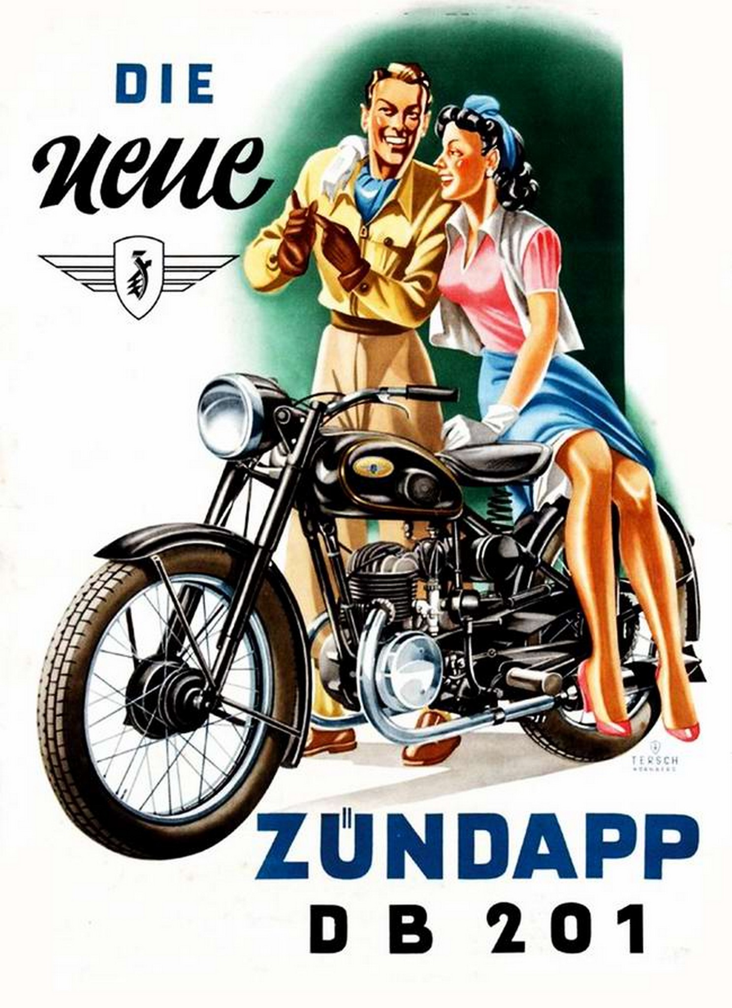 Main » Motorcycles » Zündapp Ad and Poster Collection » 1951 Die neue Zündapp DB 201