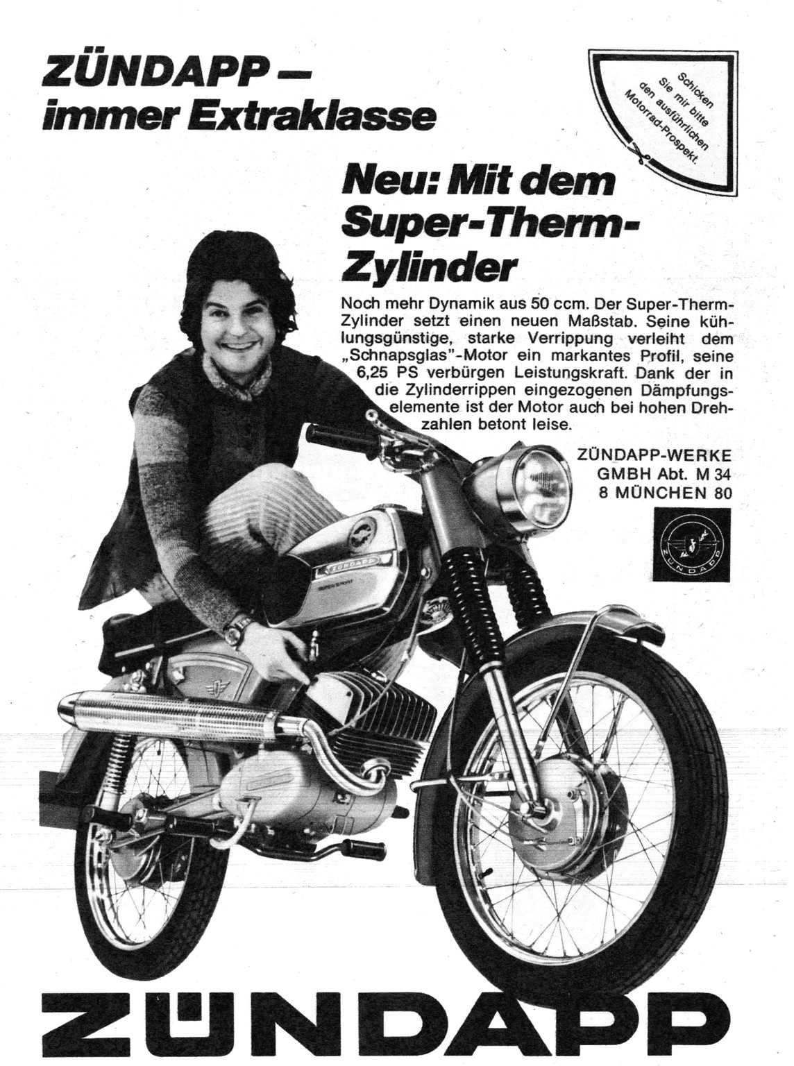 Main » Motorcycles » Zündapp Ad and Poster Collection » 1972 Zündapp – immer Extraklasse. Neu. Mit dem Super-Therm-Zylinder