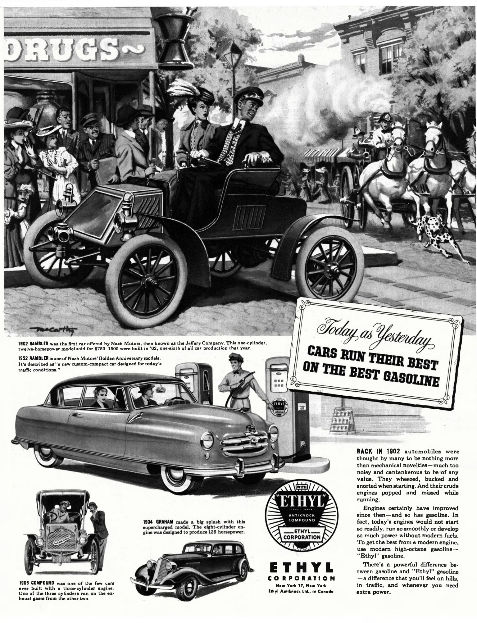 1952 Today as Yesterday Cars Run Their Best On The Best Gasoline. Ethyl