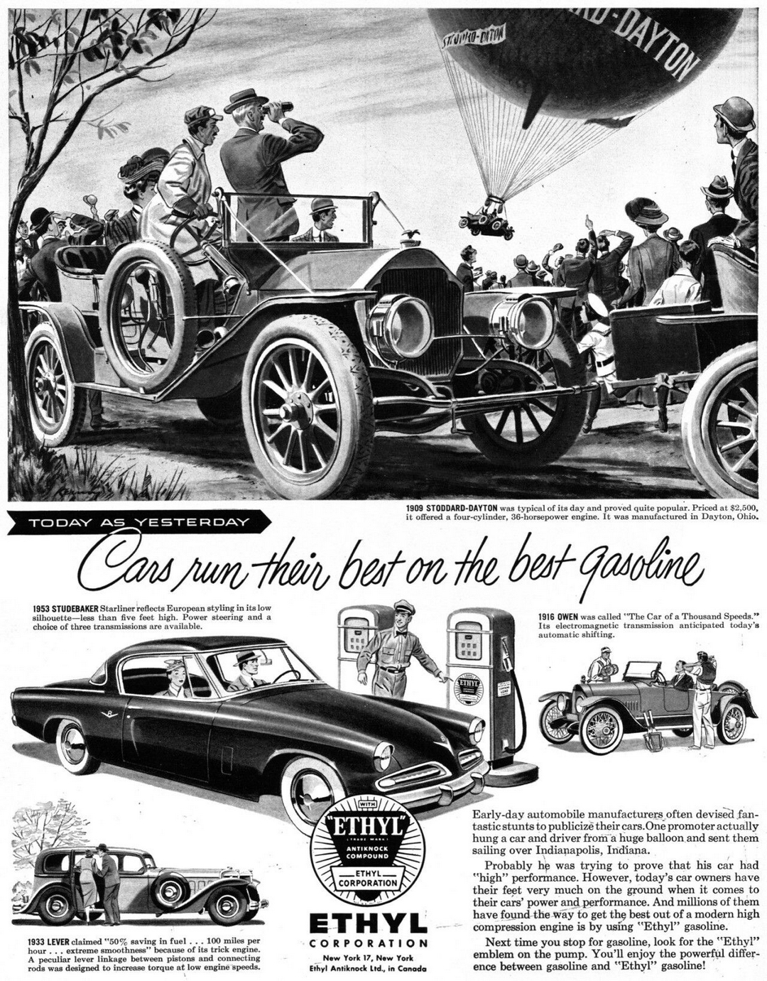 1953 Today As Yesterday. Cars run their best on the best gasoline. Ethyl
