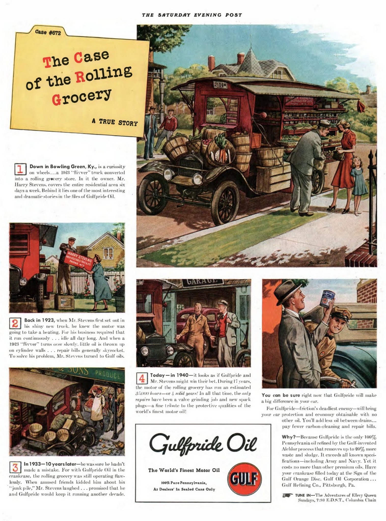 Main » Petroleum » Gulf Oil Ad and Poster Collection » 1940 The Case of the Rolling Grocery. Gulfpride Oil
