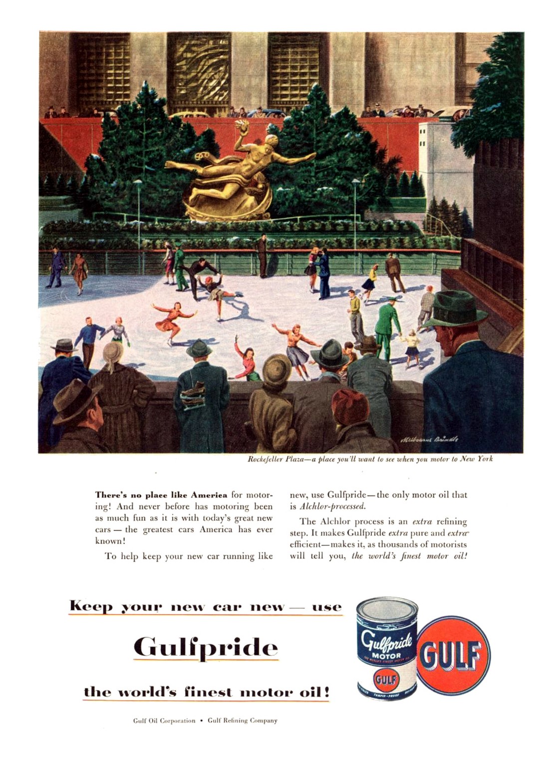 1950 Keep your new car new – use Gulfpride the world’s finest motor oil. Gulf
