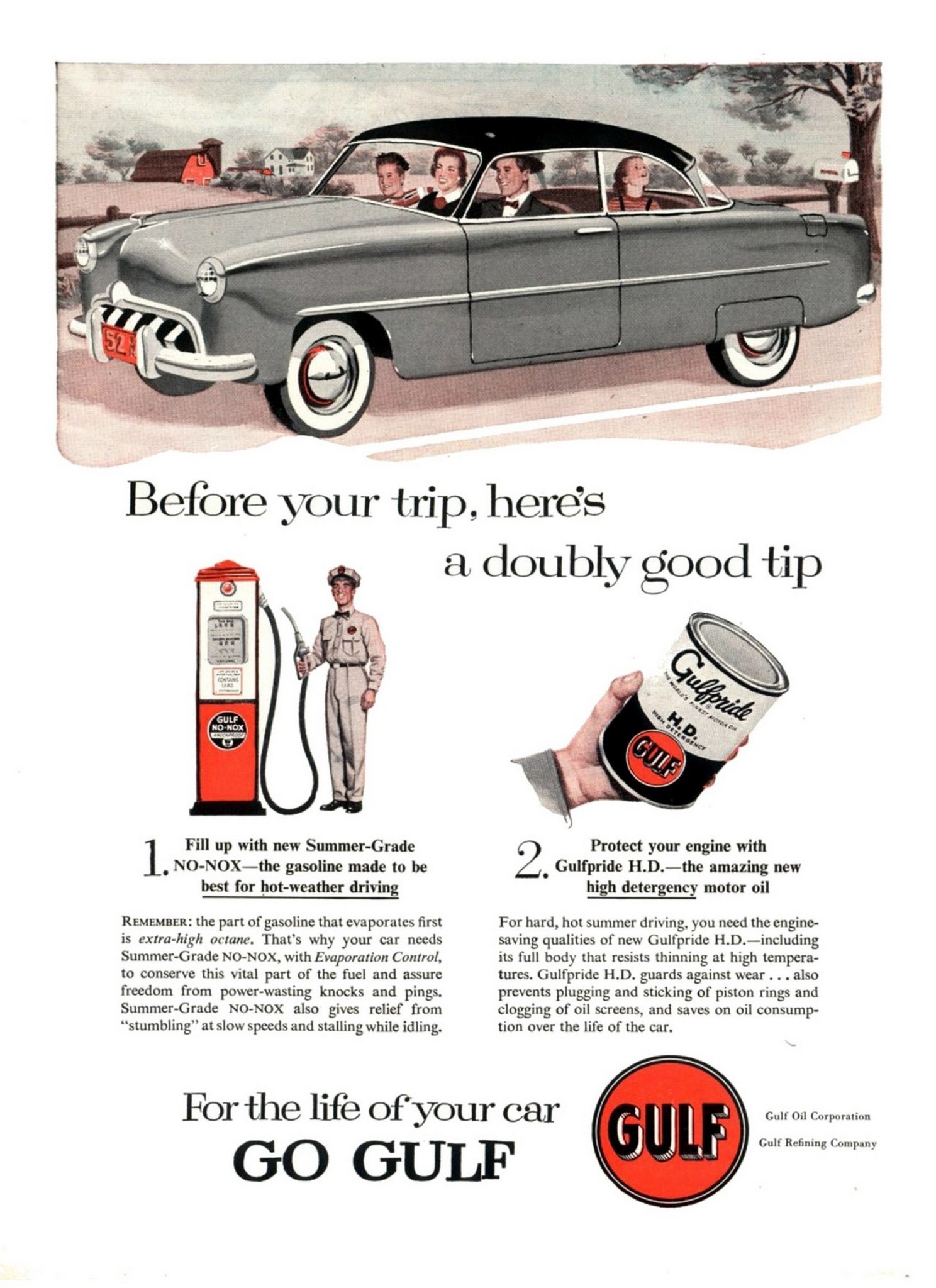 1952 Before your trip, here’s a doubly good tip. For the life of your car Go Gulf Source: Time Magazine