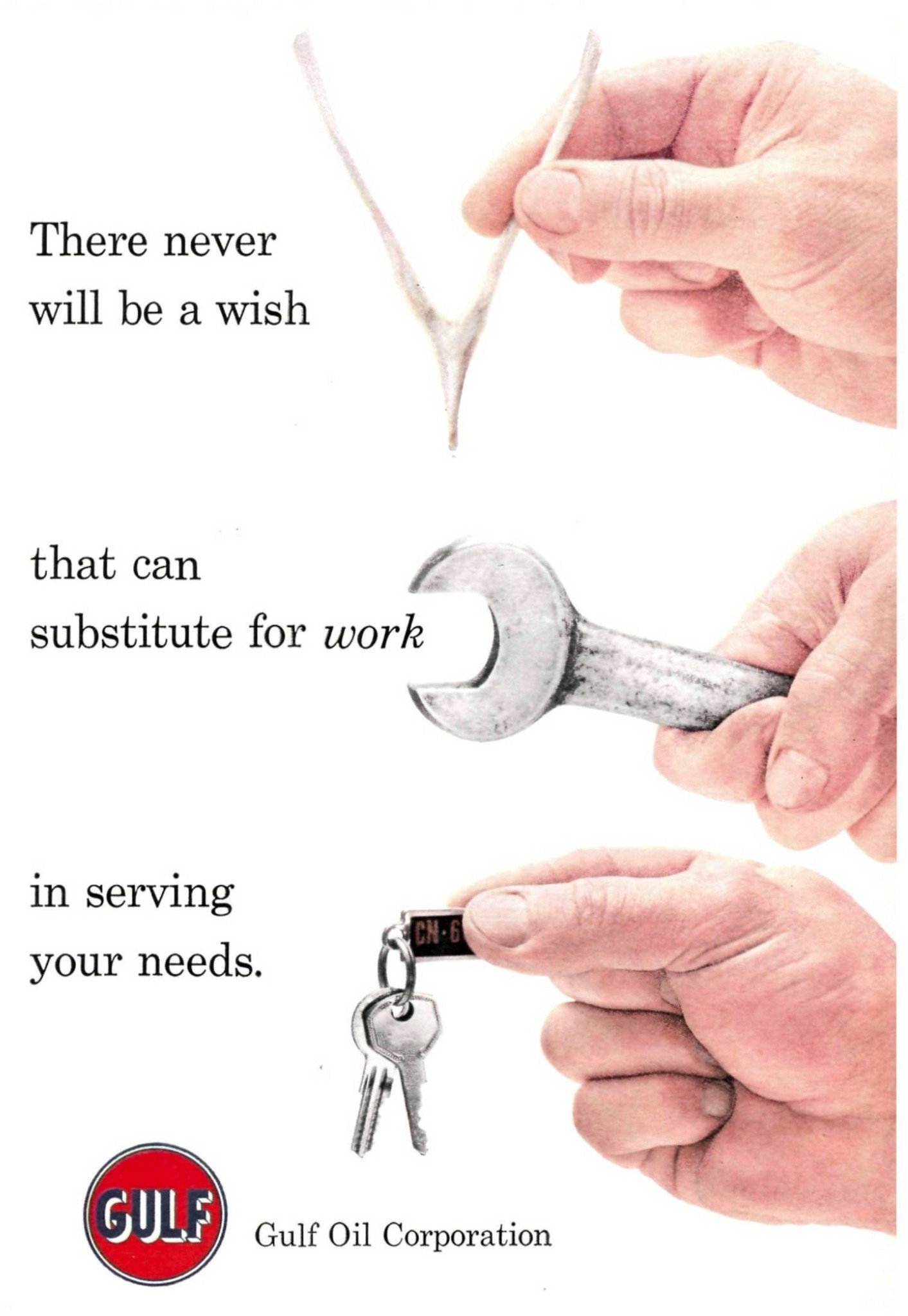 1959 There never will be a wish that can substitute for work in serving your needs. Gulf Oil Corporation