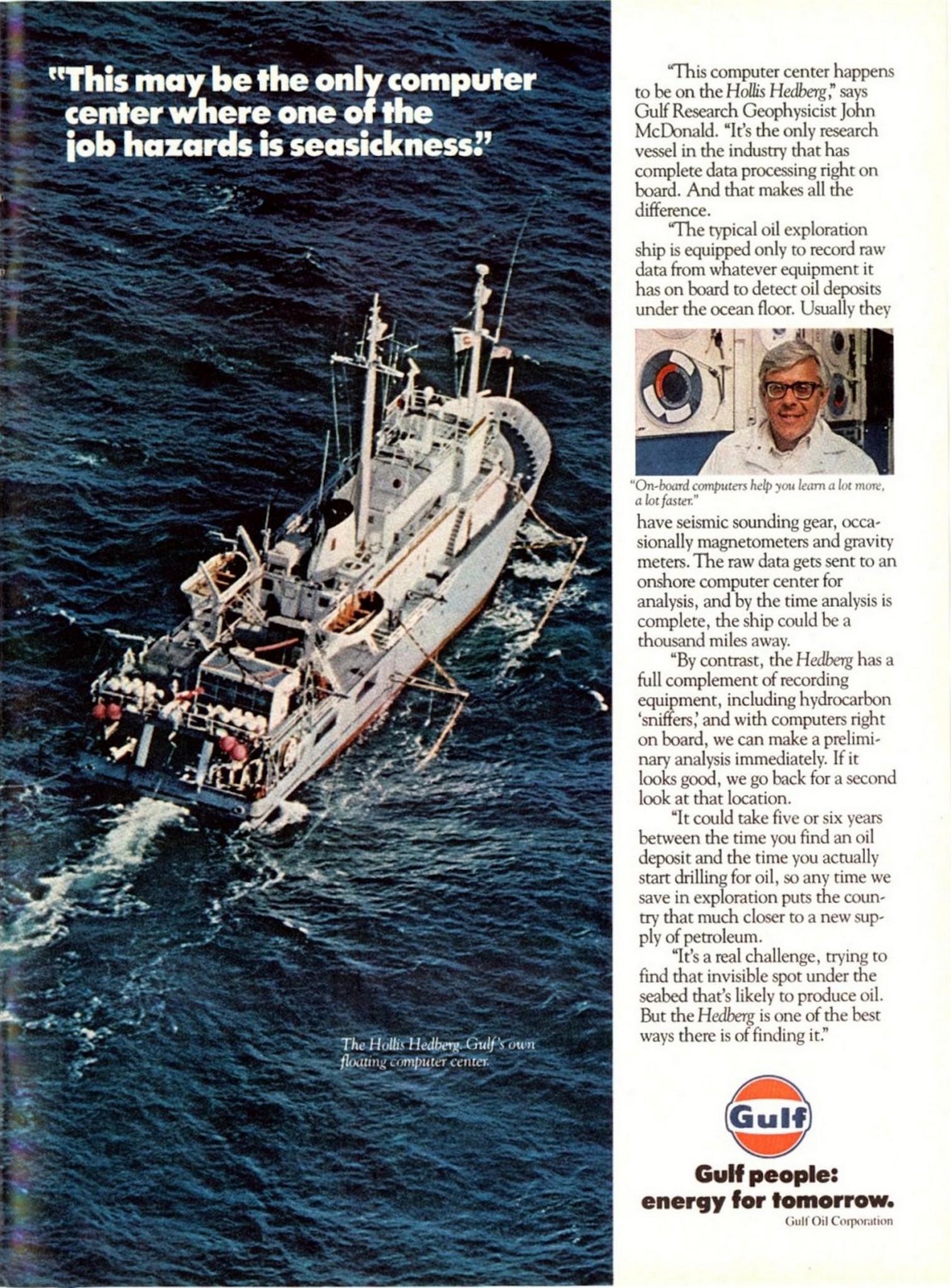 Main » Petroleum » Gulf Oil Ad and Poster Collection » 1981 ‘This may be the only computer center where one of the job hazards is seasickness. Gulf