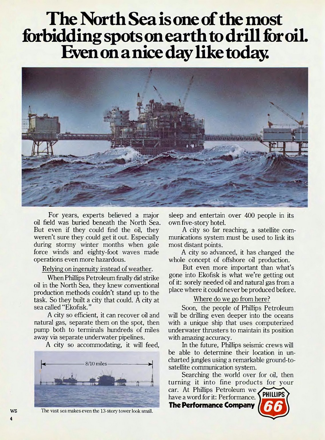 1977 The North Sea is one of the most forbidding spots on earth to drill for oil. Even on a nice day like today. Phillips 66