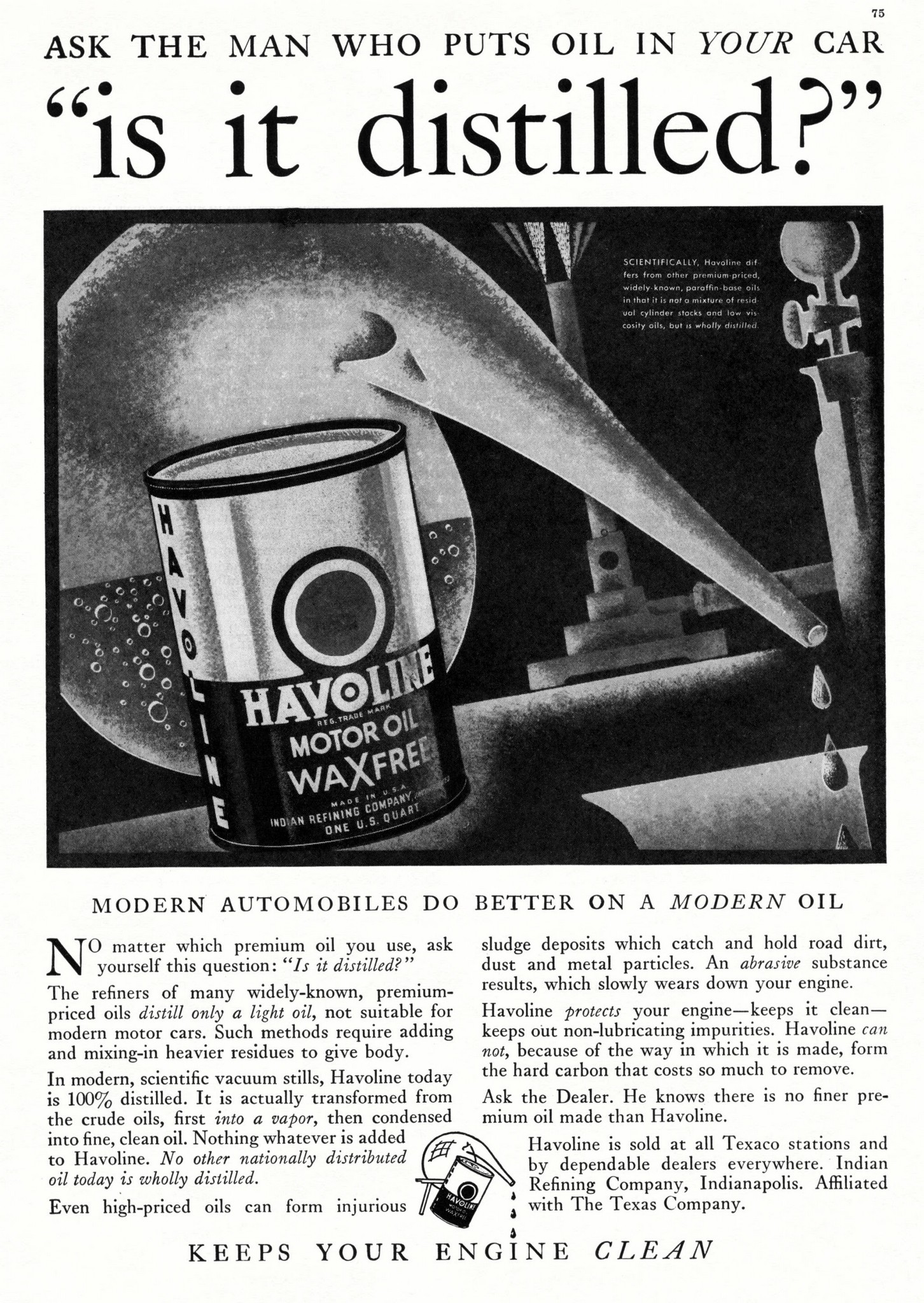 1936 Ask The Man Who Puts Oil In Your Car. ‘is it distilled.’ Havoline