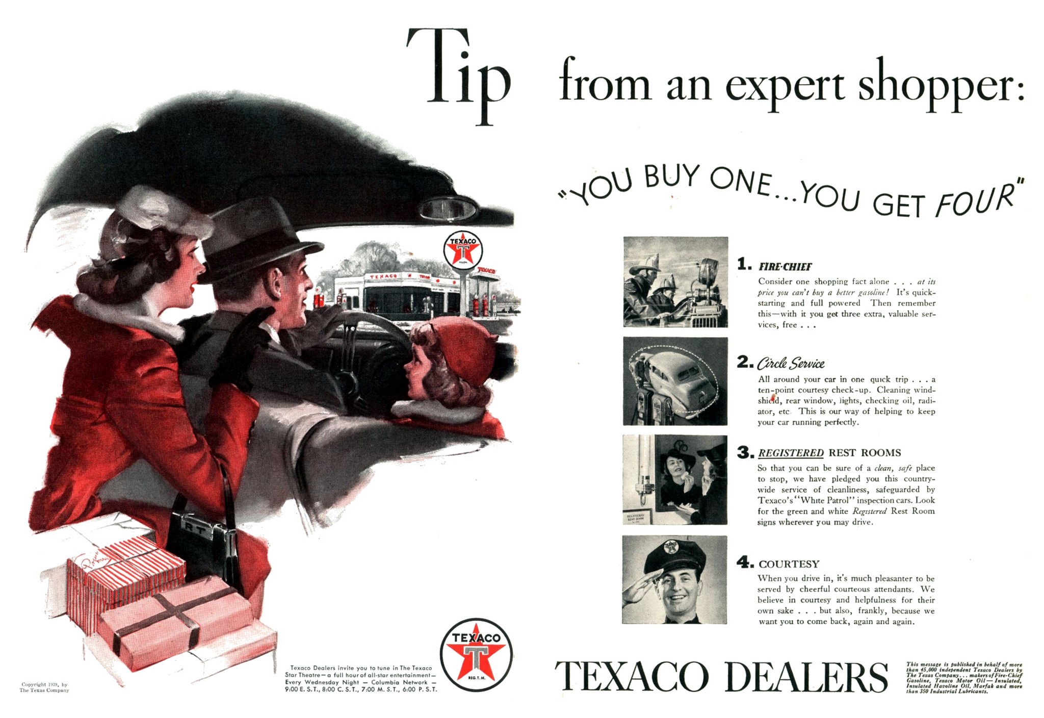 1939 Tip from an expert shopper. ‘You Buy One … You Get Four’ Texaco Dealers