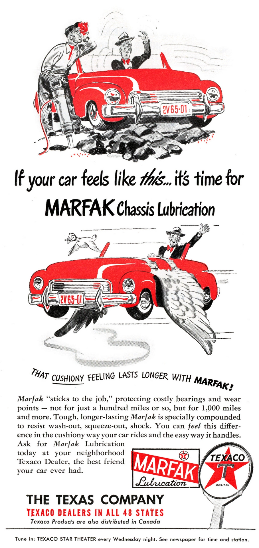 1948 If your car feels like this… it’s time for Marfak Chassis Lubrication. Texaco