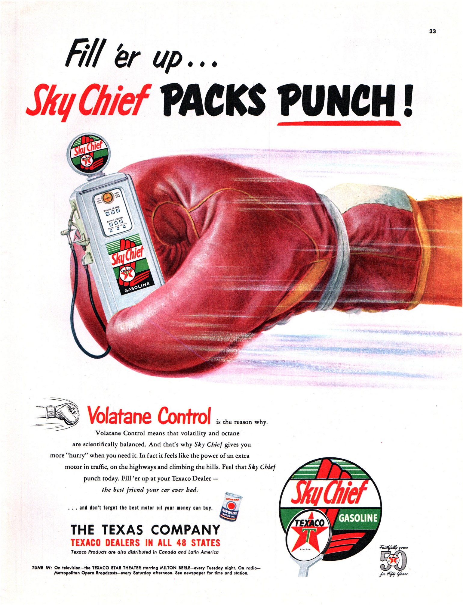 1952 Fill ‘er up… Sky Chief Packs Punch! Volane Control is the reason why. Texaco