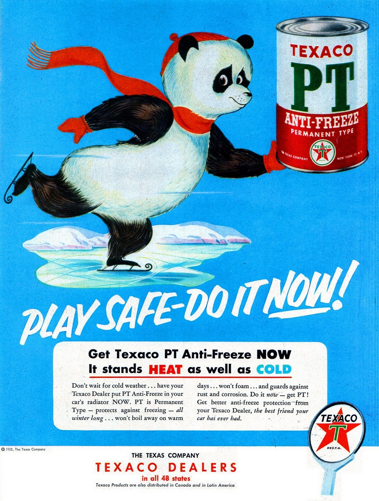 1953 Play Safe – Do It Now! Get Texaco PT Anti-Freeze Now It stands Heat as well as Cold