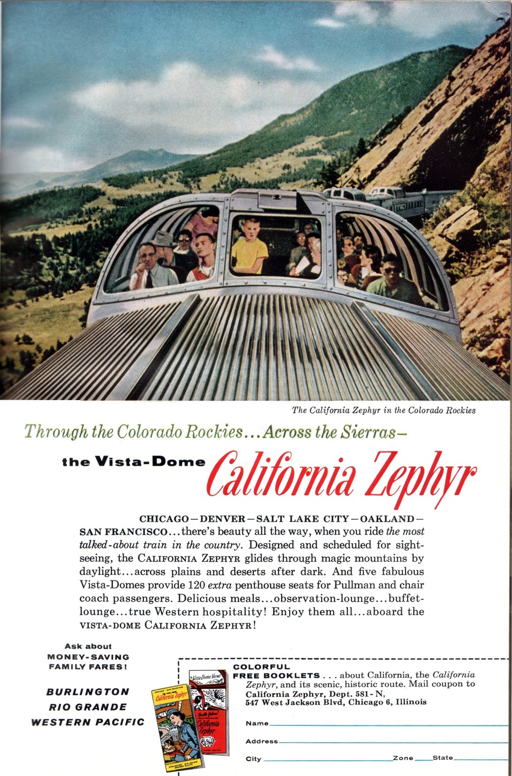 1958 Through the Colorado Rockies … Across the Sierras – California Zephyr. Burlington – Rio Grande – Western Pacific