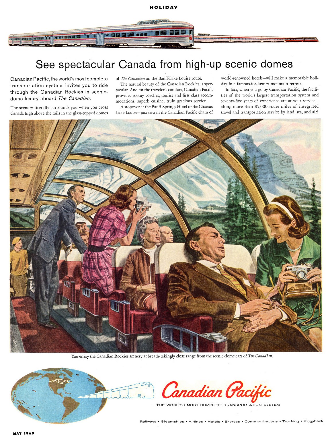 1960 See spectacular Canada from high-up scenic domes. Canadian Pacific