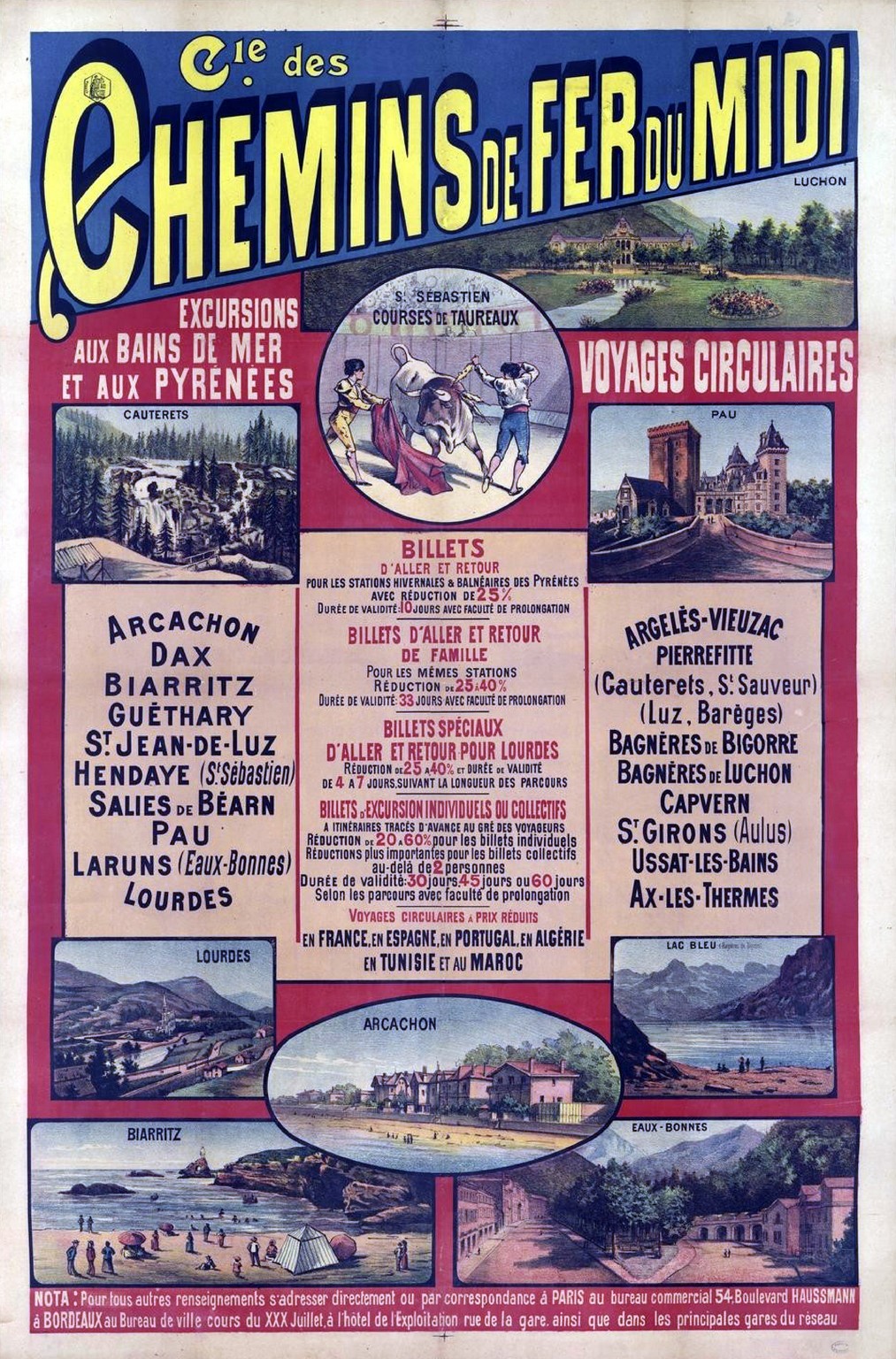 1880 Cie des chemins de fer du Midi. excursions aux bains de mer et aux Pyrénées