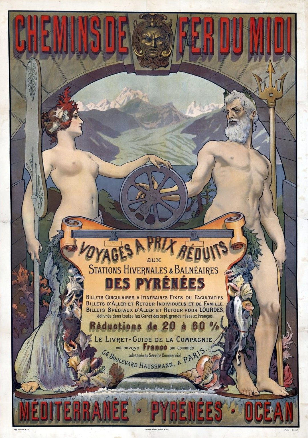 1900 Chemins de fer du Midi – voyages à prix réduits aux Stations Hivernales et Balnéaires des Pyrénées. Méditerranée, Pyrénées Océan