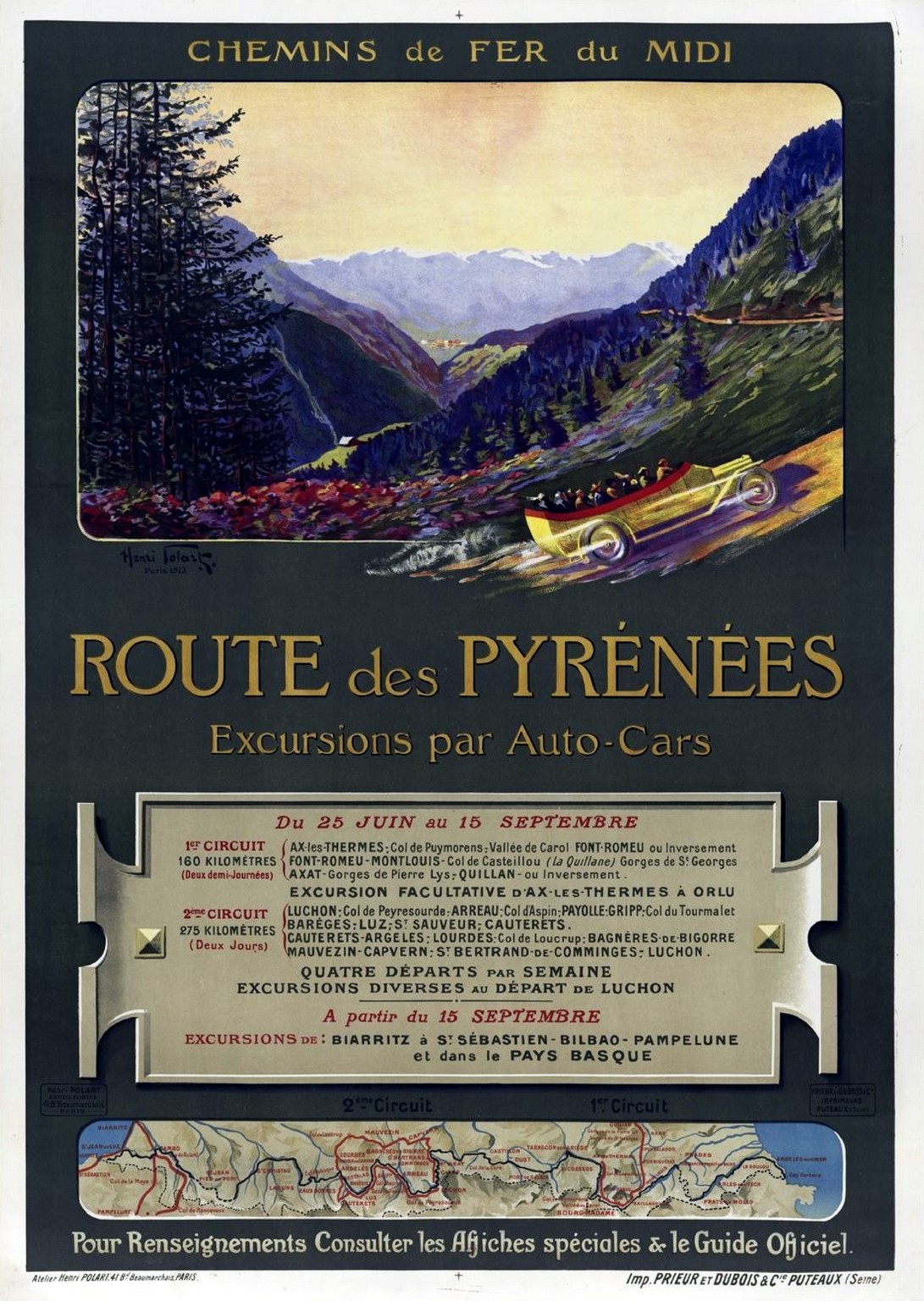 1913 Chemins de fer du Midi. Route des Pyrénées. excursions par Auto-cars