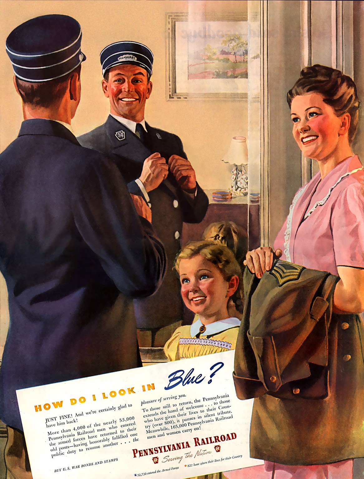 1945 How Do I Look In Blue. Pennsylvania Railroad