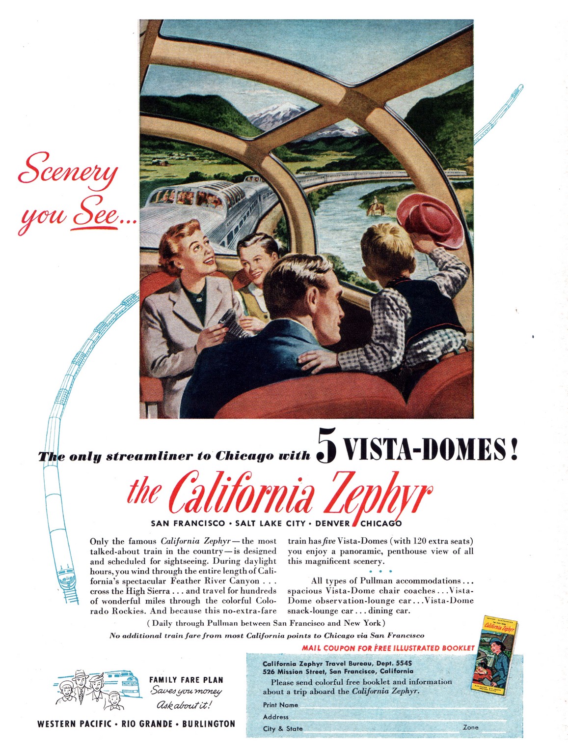 1955 Scenery you See... the California Zephyr. Western Pacific - Rio Grande - Burlington